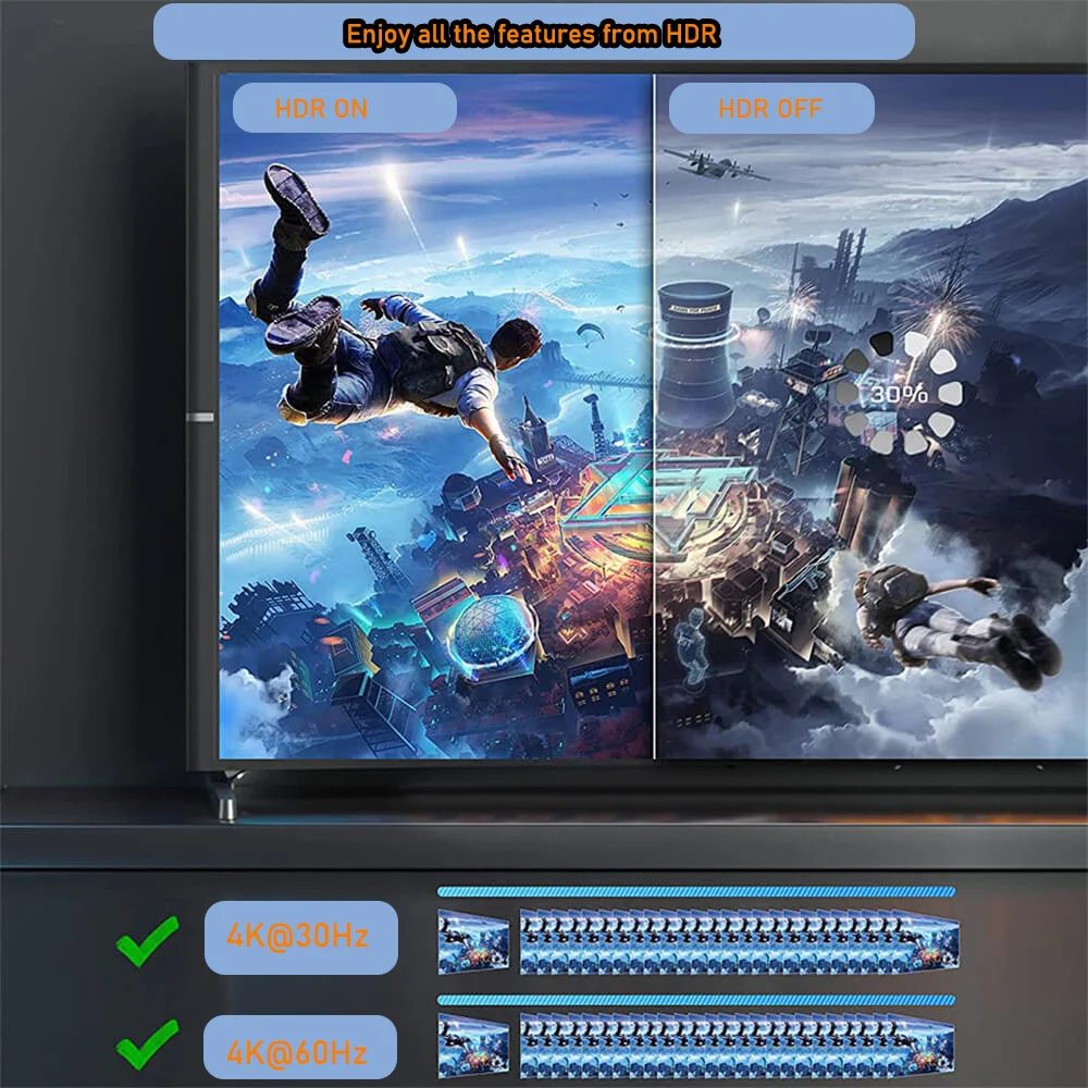 1) La transmisión de vídeo 4K tiene altos requisitos para los cables conectados. Utiliza solo HDMI ATC Certificado de alta velocidad HDMI 2,0 y cable superior