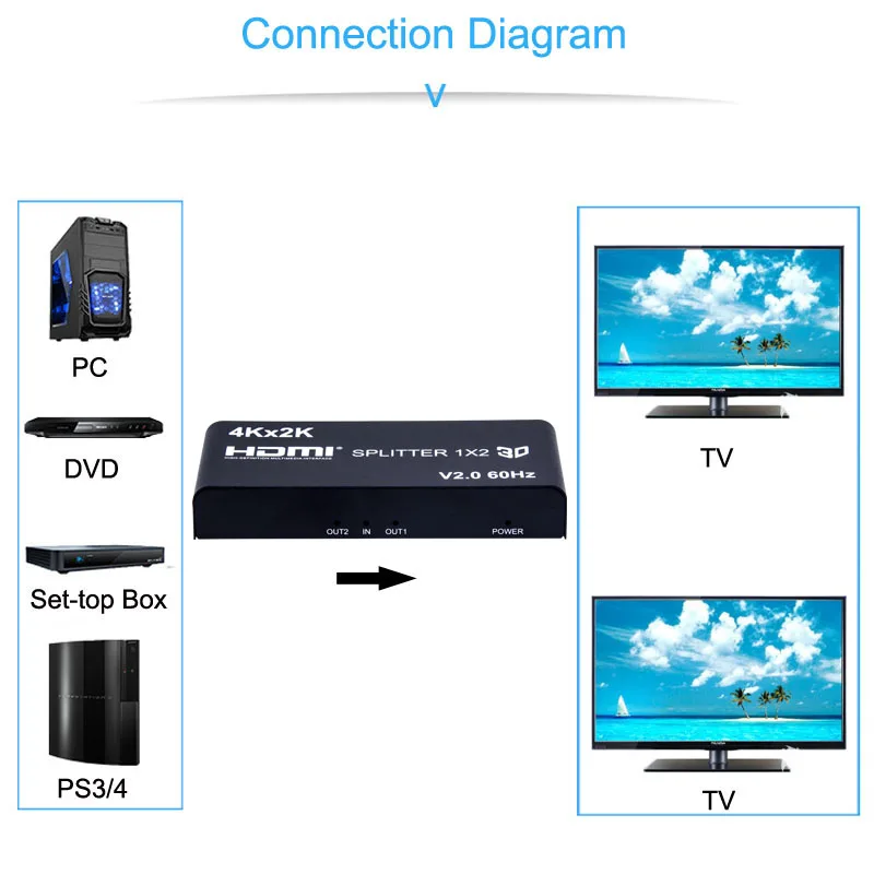 Comprar Divisor HDMI 2,0 para monitores de TV, convertidor de vídeo 1080P, 4K, 60hz, 1x8, 1 en 2, 4, 6, 8 salidas, 1x2, 1x4, PS4, PC, DVD