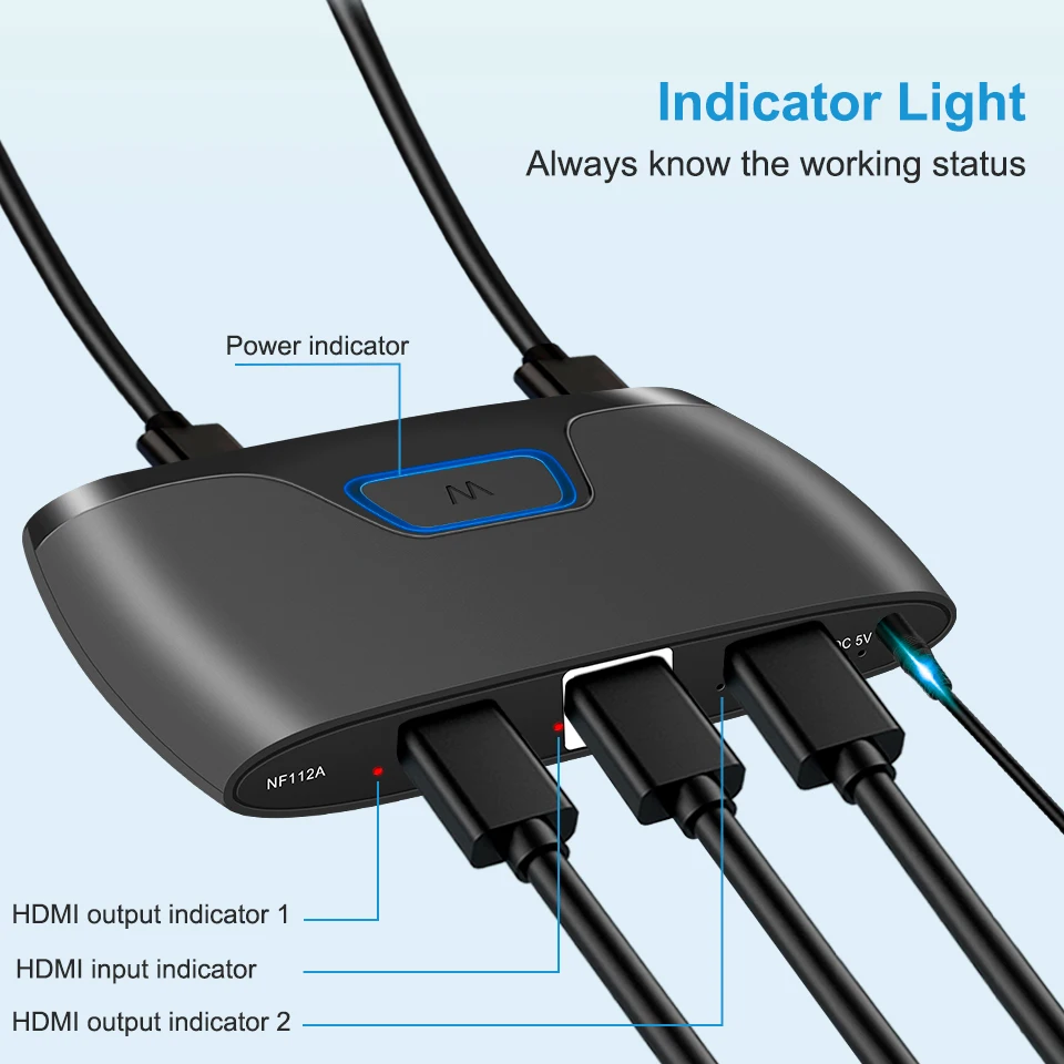 * HDMI 1X2 Splitter Max soporte 4K 60Hz, la versión HDMI es HDMI 2,0