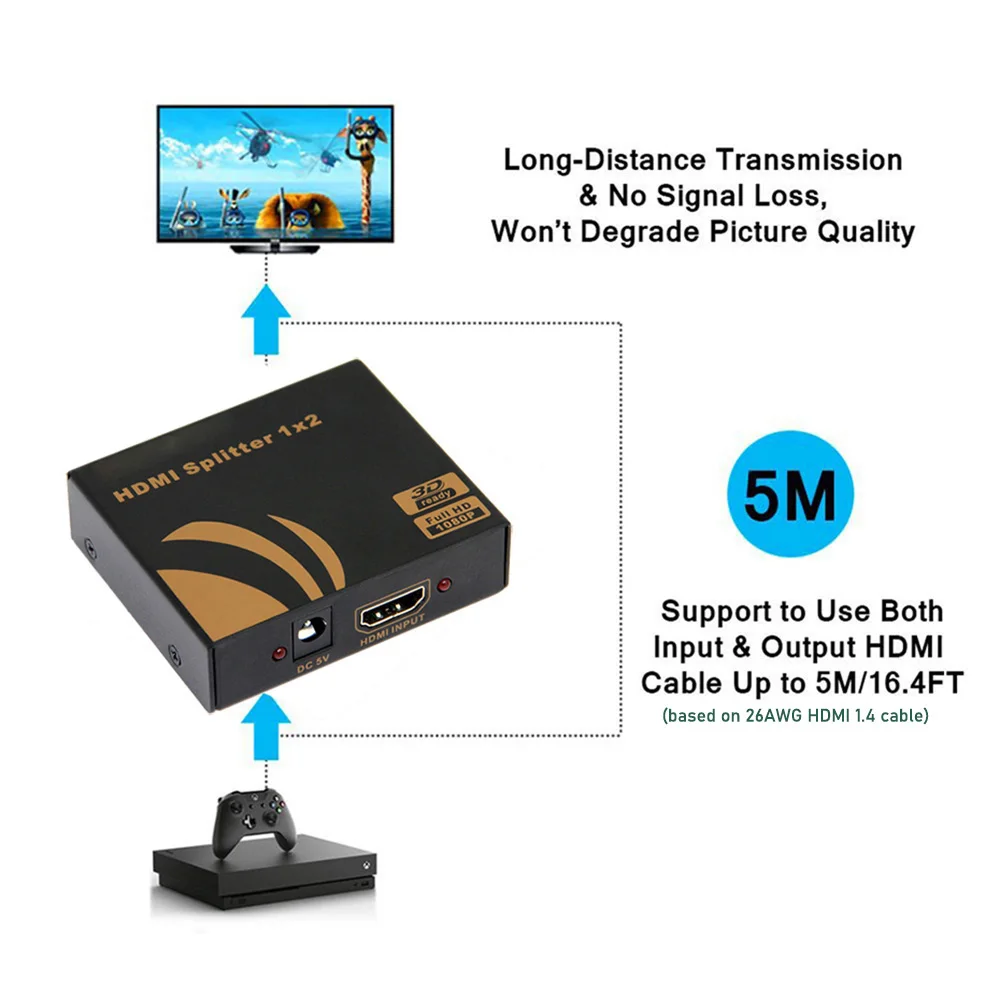 No es como el divisor HDMI barato en el mercado, el divisor HDMI 1X2 de HDmatters viene con un ecualizador incorporado y ayuda a prevenir la pérdida de señal de transmisión, permitiendo el uso de cables más largos que los normales.