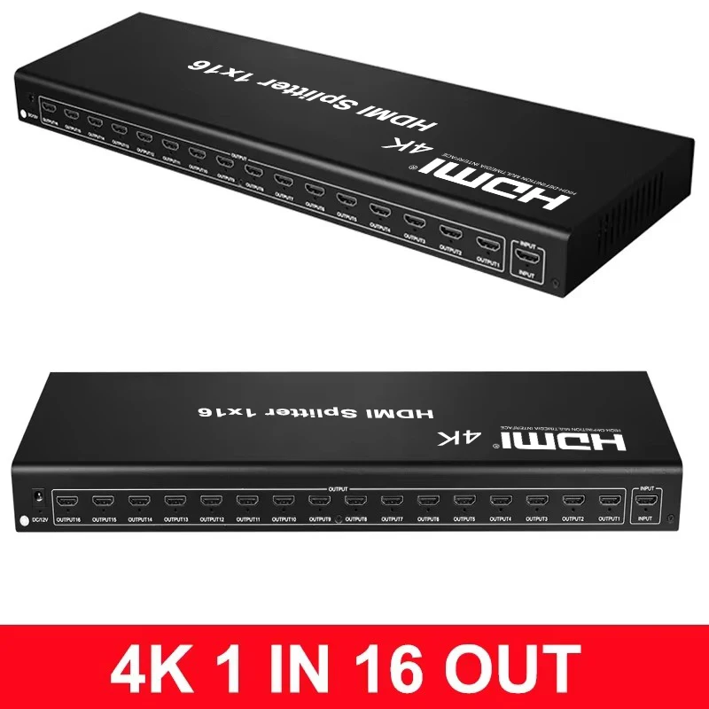 Divisor HDMI 4K 1X16, convertidor distribuidor de vídeo 1x10, divisor HDMI 1x8 de 1 a 8 10 16 para cámara PS3, PS4, ordenador portátil, PC para monitorear TV