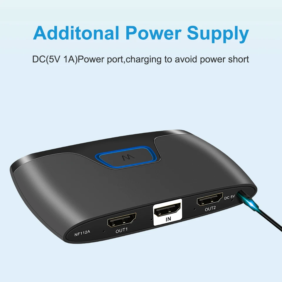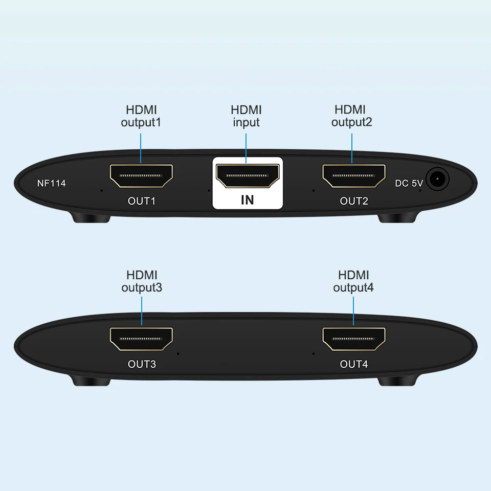 1. El divisor 1x4 HDMI distribuye: 1-fuente HDMI a 4-pantallas HDMI simultáneamente