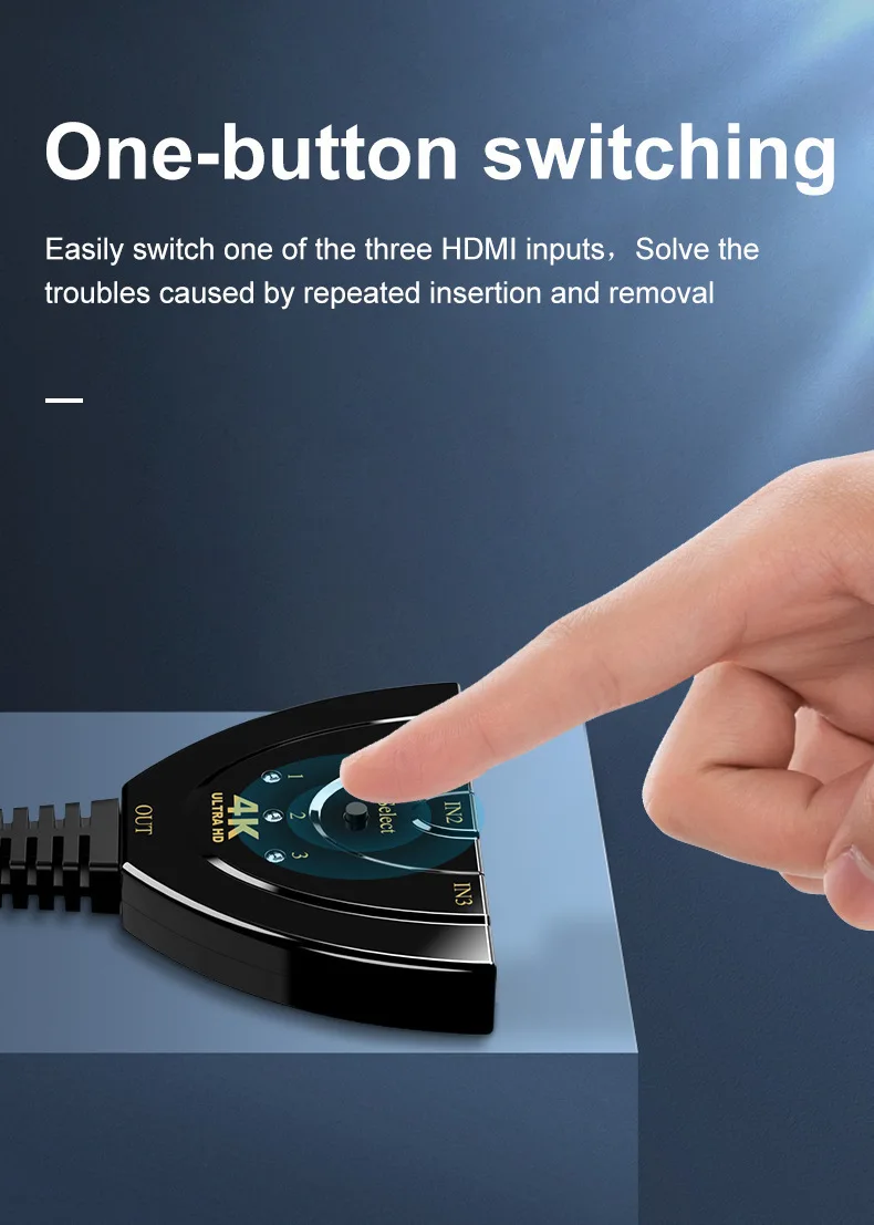 PLUG AND PLAY:No external driver and power needed, the HDMI switch will work once plugged in. Simply press the button to make shift of input or output source and the LED indicator tells you which port is active.