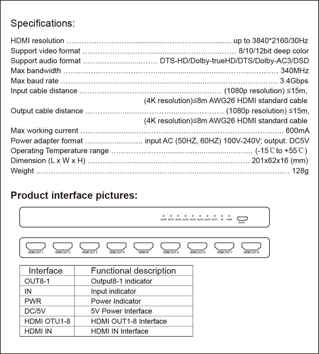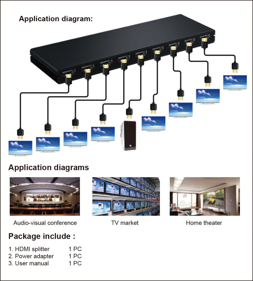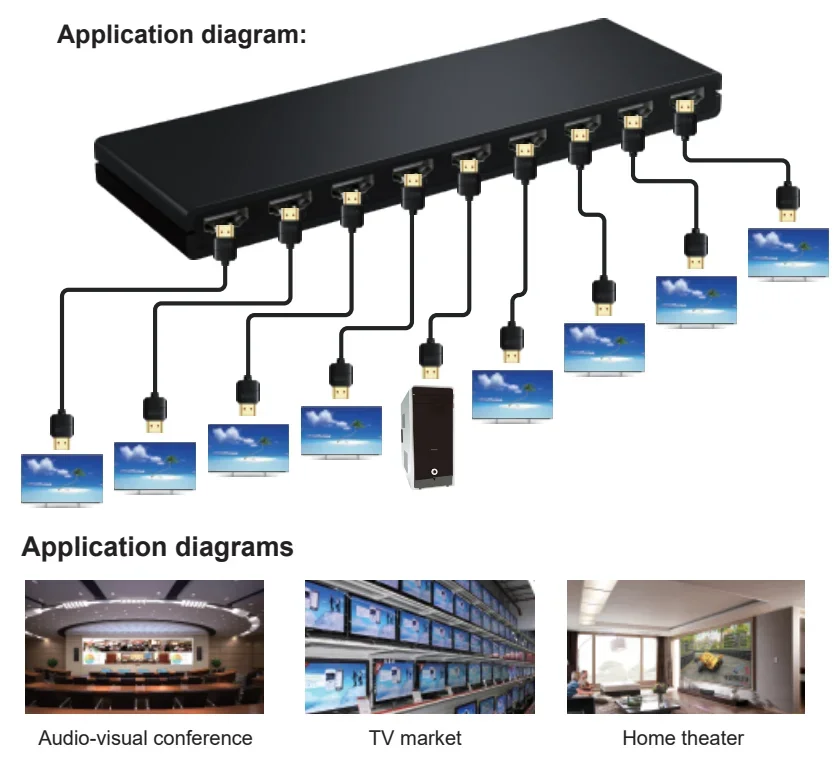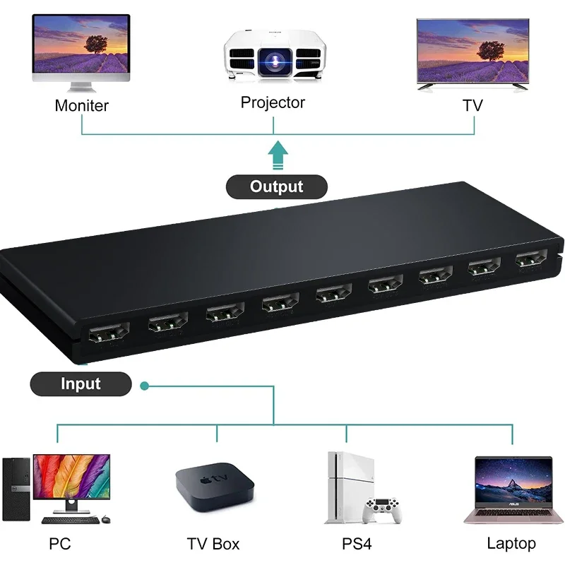 Comprar Divisor HDMI 4K 30Hz 1x8 1 en 8 salidas amplificador distribuidor de vídeo HDMI 8 pantalla HDMI duplicada para DVD PS3 PC TV pantalla de mercado