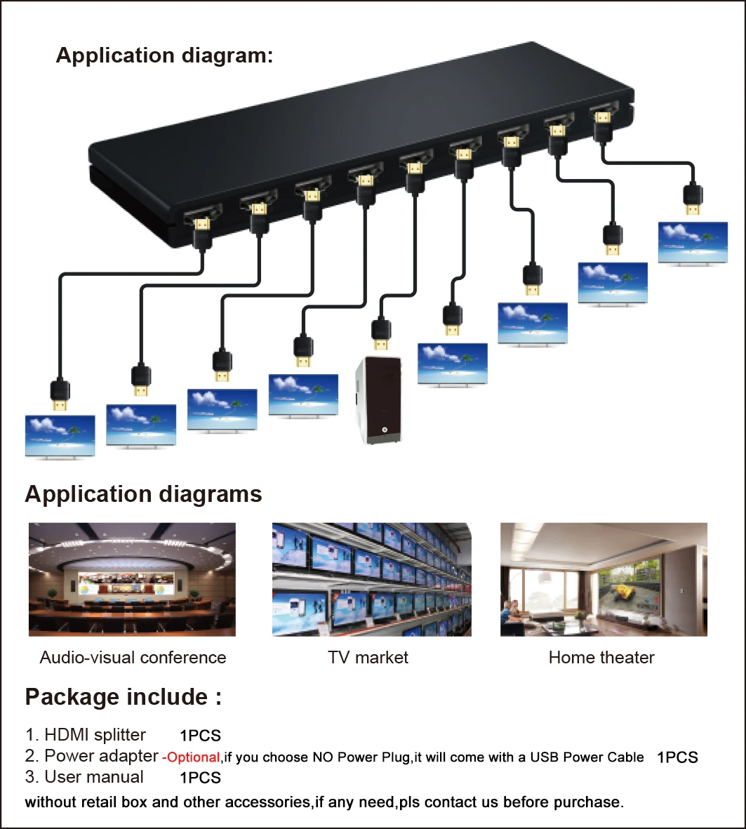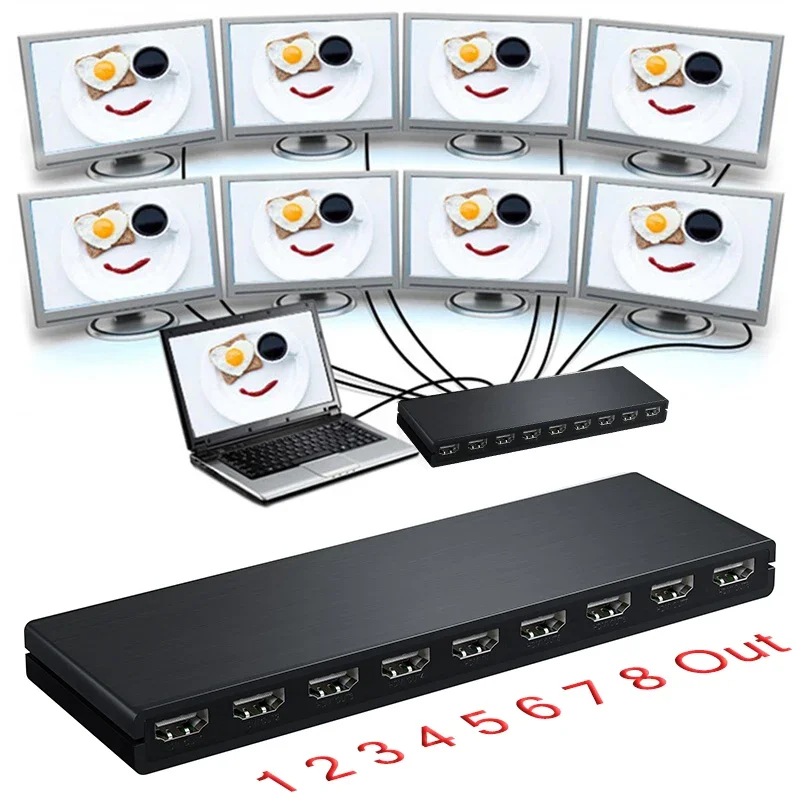 Comprar Divisor HDMI de 4K @ 30Hz 1x8, convertidor de distribuidor de vídeo HDMI, pantalla múltiple para PS4, Xbox, cámara, PC a Monitor de TV