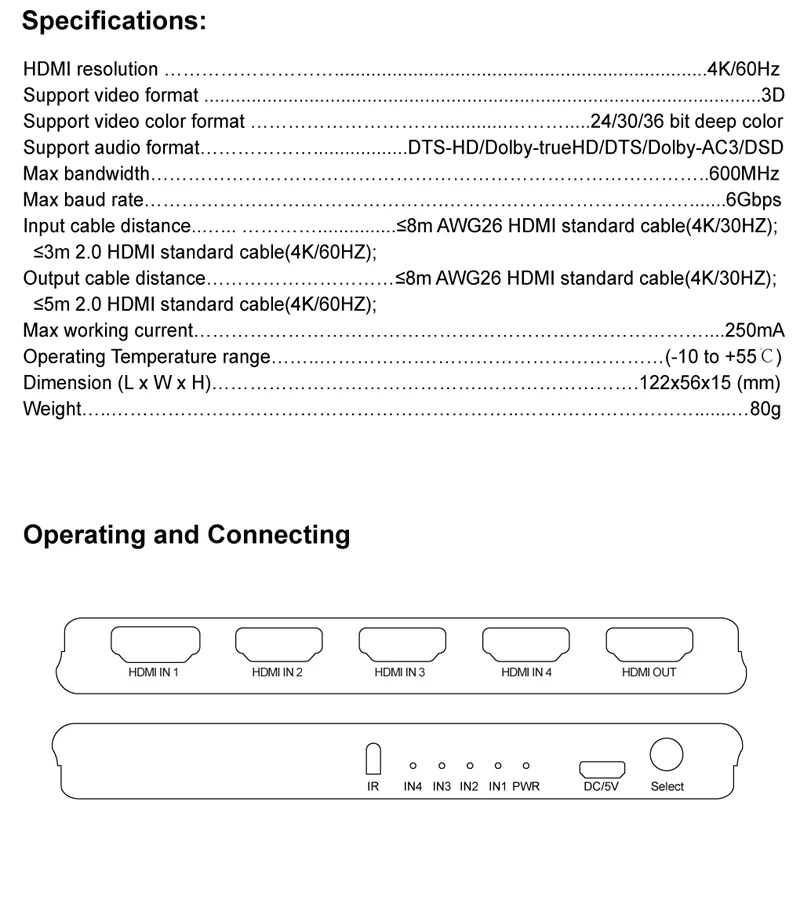 Comprar Divisor HDMI 4K 60hz 1x2 1x4 1 in 2 4 Out 3x1 4x1 Switch 1080p HDMI Switcher 4 in 1 Out para PS4 PS5 Laptop PC To TV Projector