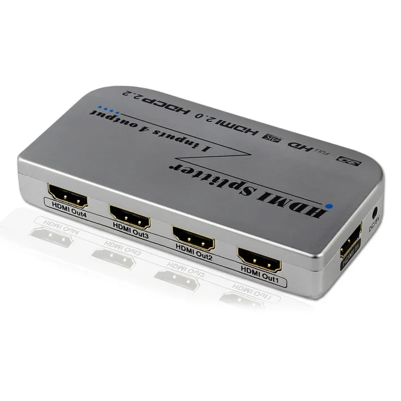Versión HDMI.................................................HDMI 2.0, HDCP 2.2 Resolución HDMI..24/50/60fps/480i/480p/576i/576p/720p/1080i/1080p/2160p Admite formato de color de vídeo....................24 bits/color profundo 30 bits, 36 bits, 48 bits Admite formato de audio............................DTS-HD/Dolby-trueHD/LPCM7.1/DTS/Dolby-AC3/DSD HD(HBR) Ancho de banda máximo.....................................................................600MHz Velocidad máxima en baudios............................................................18,0 Gbps Señal DDC de entrada/salida................................................5Voltios p-p (TTL) Distancia del cable de entrada 1080P....................≤15 m Cable estándar HDMI AWG24 Distancia del cable de salida 1080P................. ≤20 m Cable estándar HDMI AWG24 Distancia del cable de entrada 4KX2K............................Cable estándar HDMI AWG24≤5m Distancia del cable de salida 4KX2K................. ≤10m Cable estándar HDMI AWG24 Corriente máxima de trabajo....................................................1000mA Formato del adaptador de corriente Entrada........AC100V-240V (50/60Hz); Salida: CC 5 V/2 A Rango de temperatura de funcionamiento............................................ (-15 a +55℃) Rango de humedad de funcionamiento............................5 a 90% RH (sin condensación) Dimensiones (largo x ancho x alto).....................................aprox.110x60x18(mm)