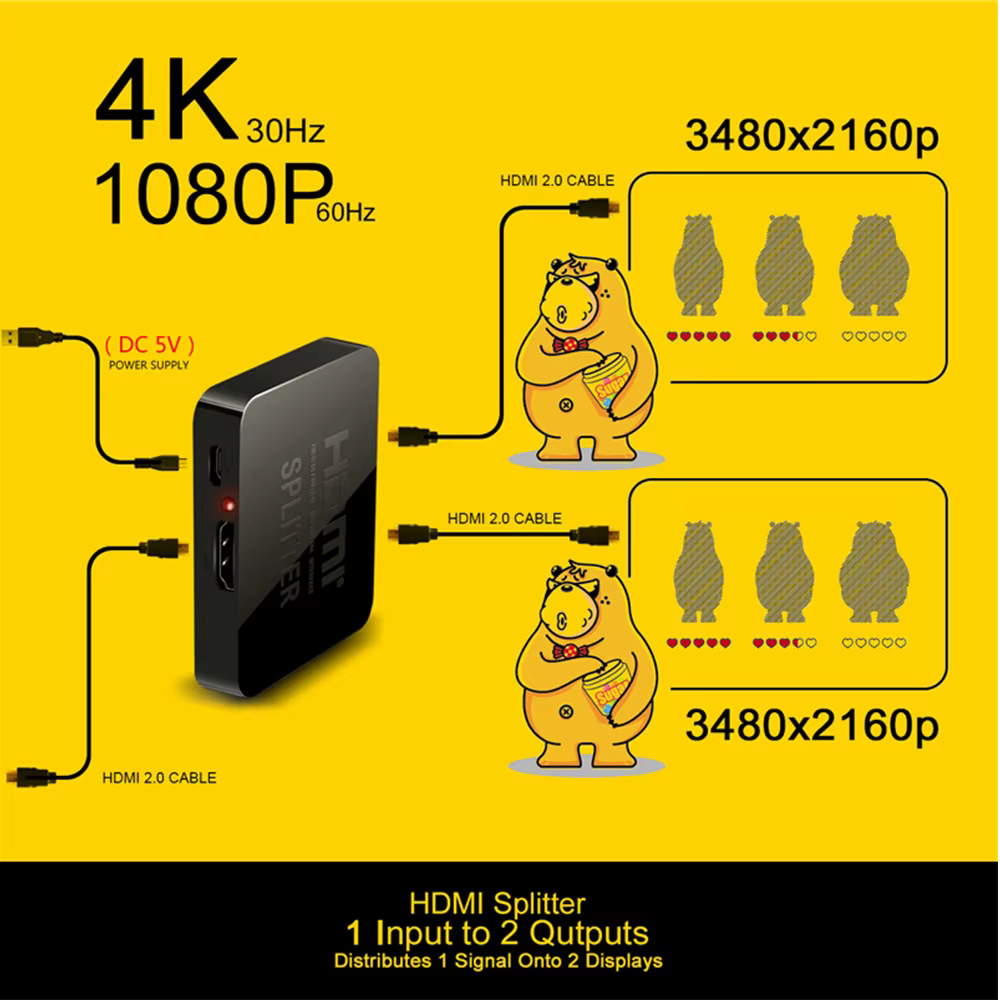 Comprar Divisor HDMI 4K, amplificador de señal 1x2, divisor de interruptor HDMI, caja de distribución de vídeo 1 en 2 salidas para monitores duales, HDTV, DVD, PC, PS3, Xbox