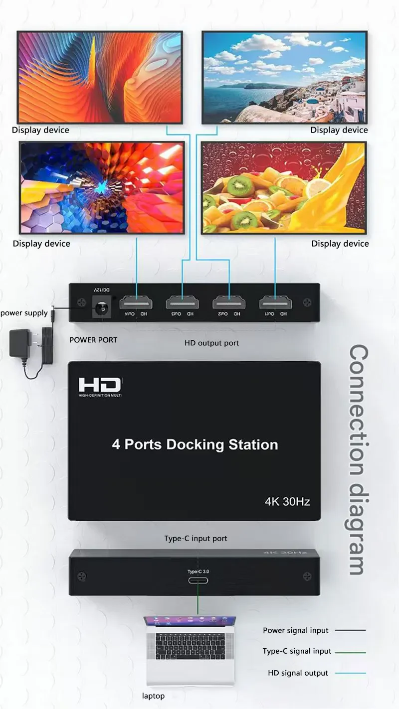* Pantalla HDMI conectada por USB3.0 para computadora portátil o de escritorio 4K/30Hz*2-1080P/60Hz *2 Calidad de imagen HD;