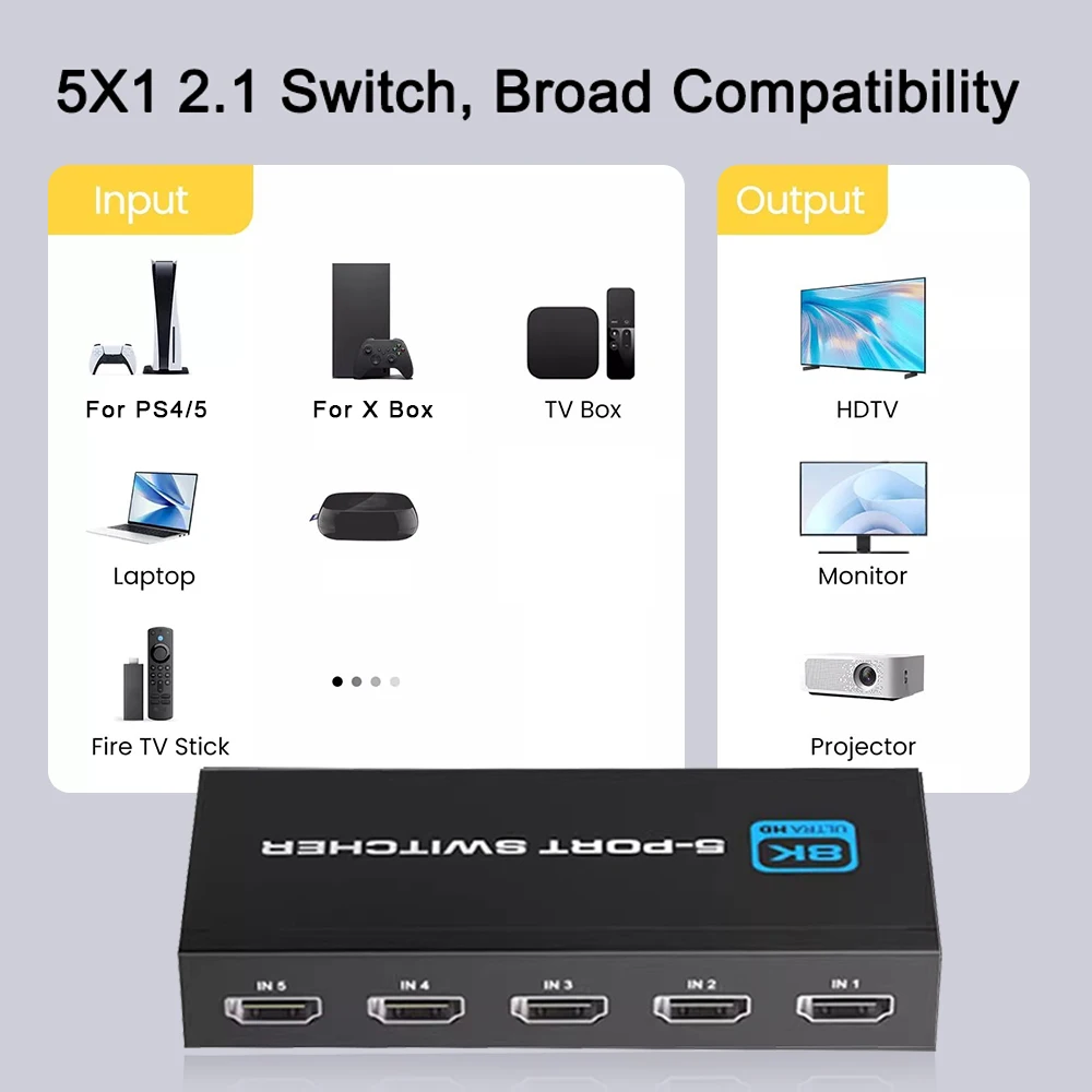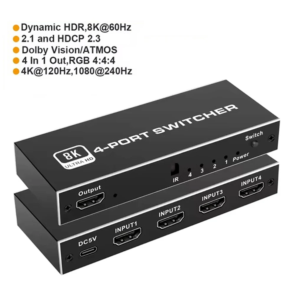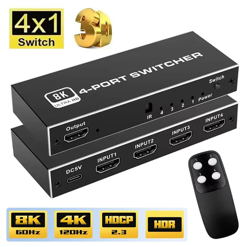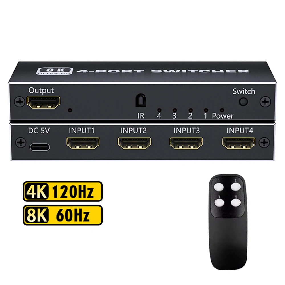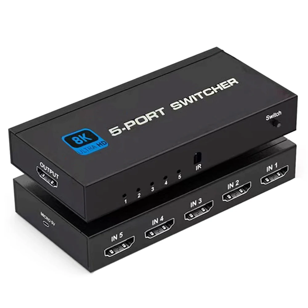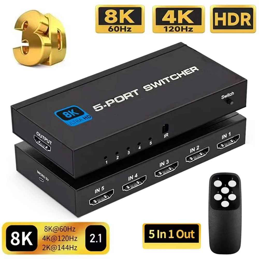 Comprar Divisor de interruptor 2,1, Compatible con HDMI, 4/5 puertos, 8K, 60Hz, 4K, 120Hz, con Control remoto, HDR para Monitor PS5, TV Box, ordenador portátil y PC