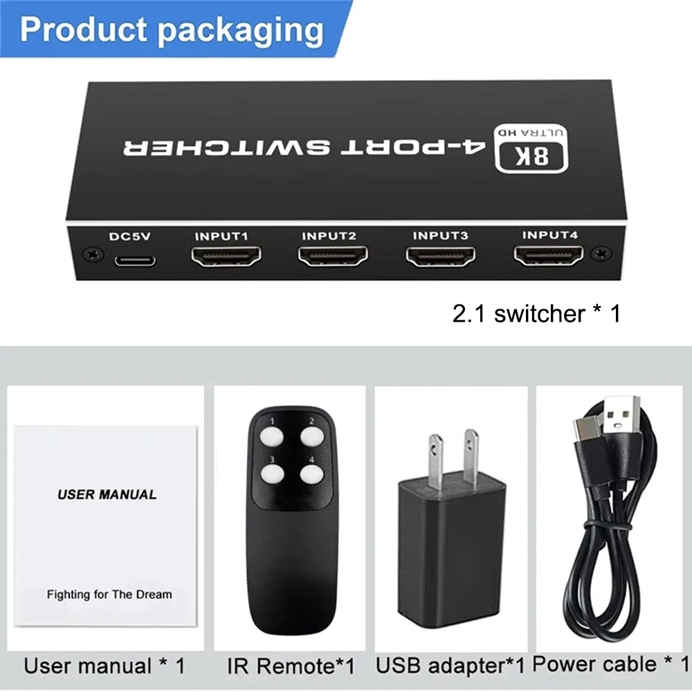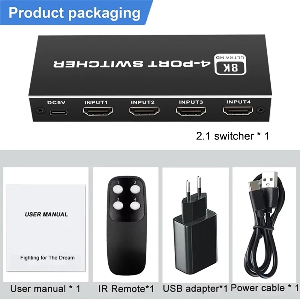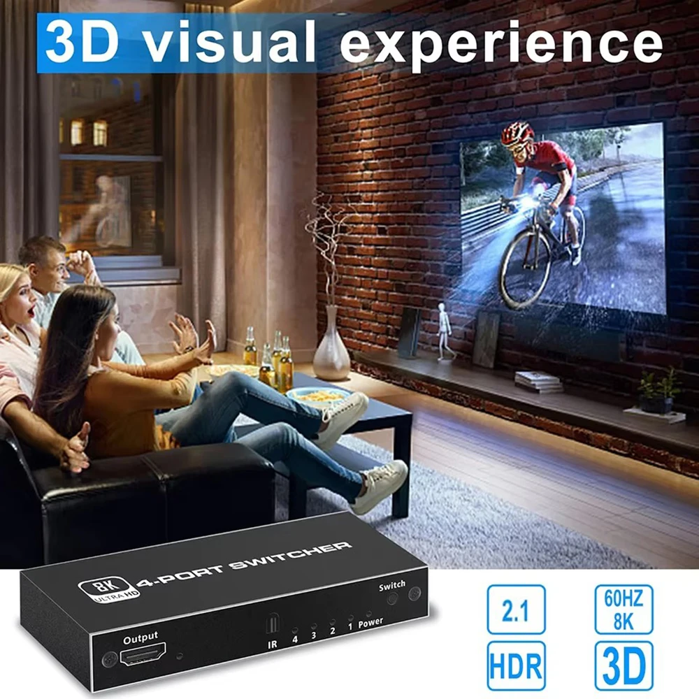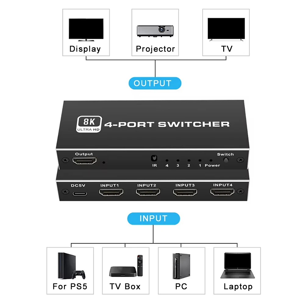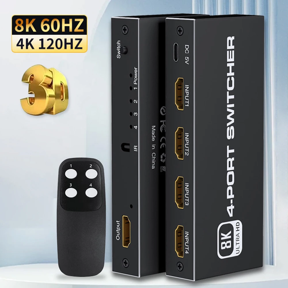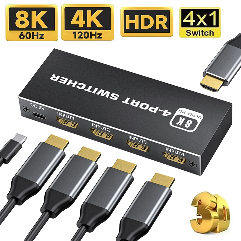 Comprar Divisor de interruptor 2,1, Compatible con HDMI, 4/5 puertos, 8K, 60Hz, 4K, 120Hz, con Control remoto, HDR para Monitor PS5, TV Box, ordenador portátil y PC