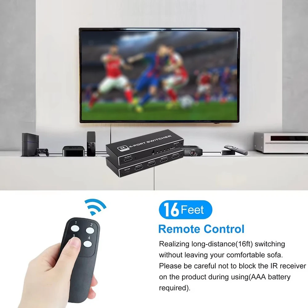 🔥 Para una resolución de 8K, la longitud del cable Compatible con HDMI conectado a ambos extremos del interruptor no debe exceder los 3 metros.