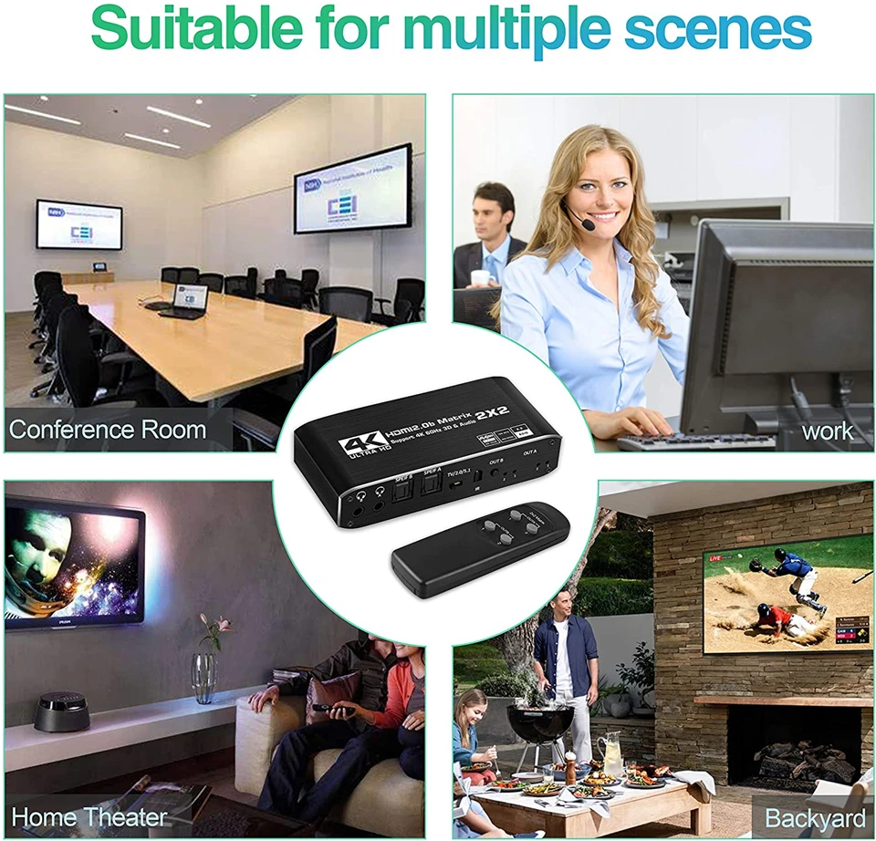 2024 4K @ 60Hz HDMI Matrix 2x2 Switch Splitter Support HDCP 2,2 IR Control remoto HDMI Switch 4x2 Spdif 4K HDMI 4x2 Matrix Switch