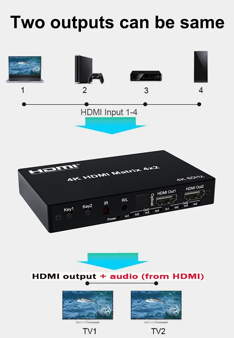 Nueva llegada HDMI Matrix 4x2 4K @ 60HzIntroducción: