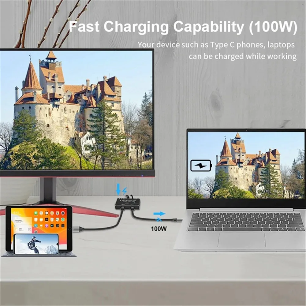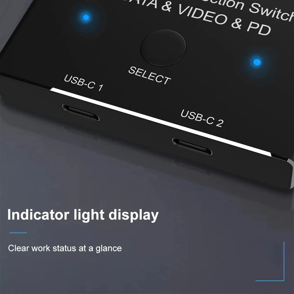 Comprar Divisor de interruptor USB tipo C, conmutador de datos de vídeo KVM 8K, 30Hz, 4K, 120Hz, PD, 100W, 10Gbps para PC y portátil, 1x2/2x1