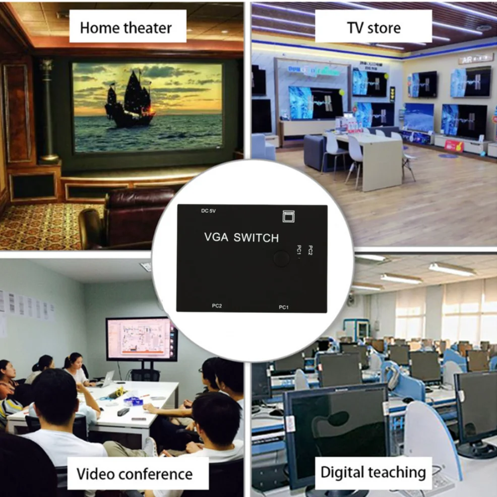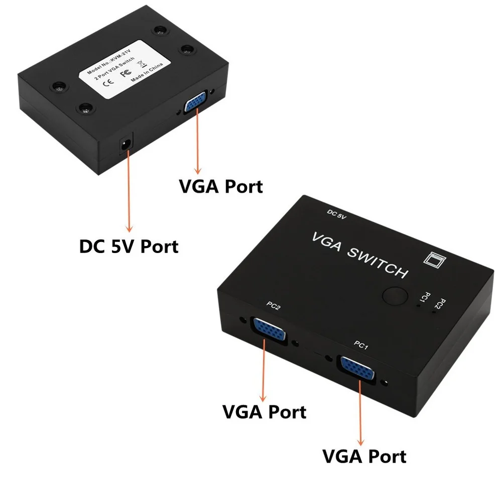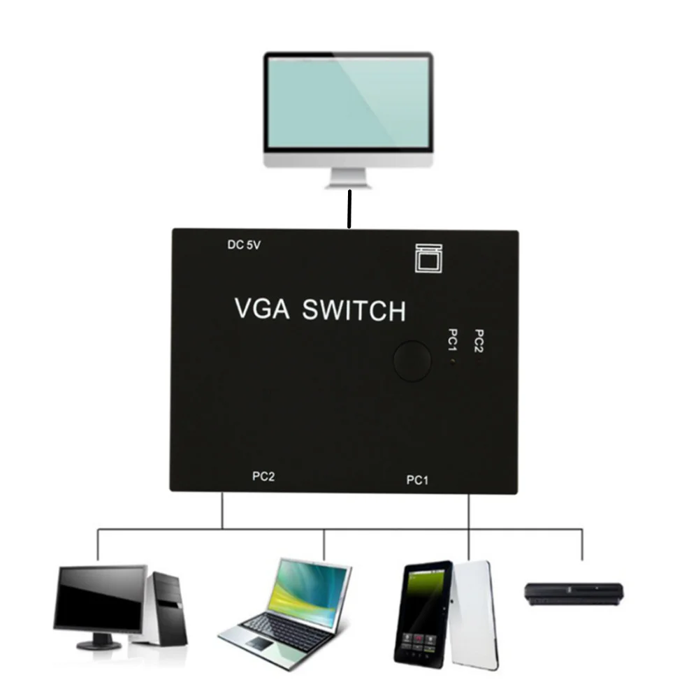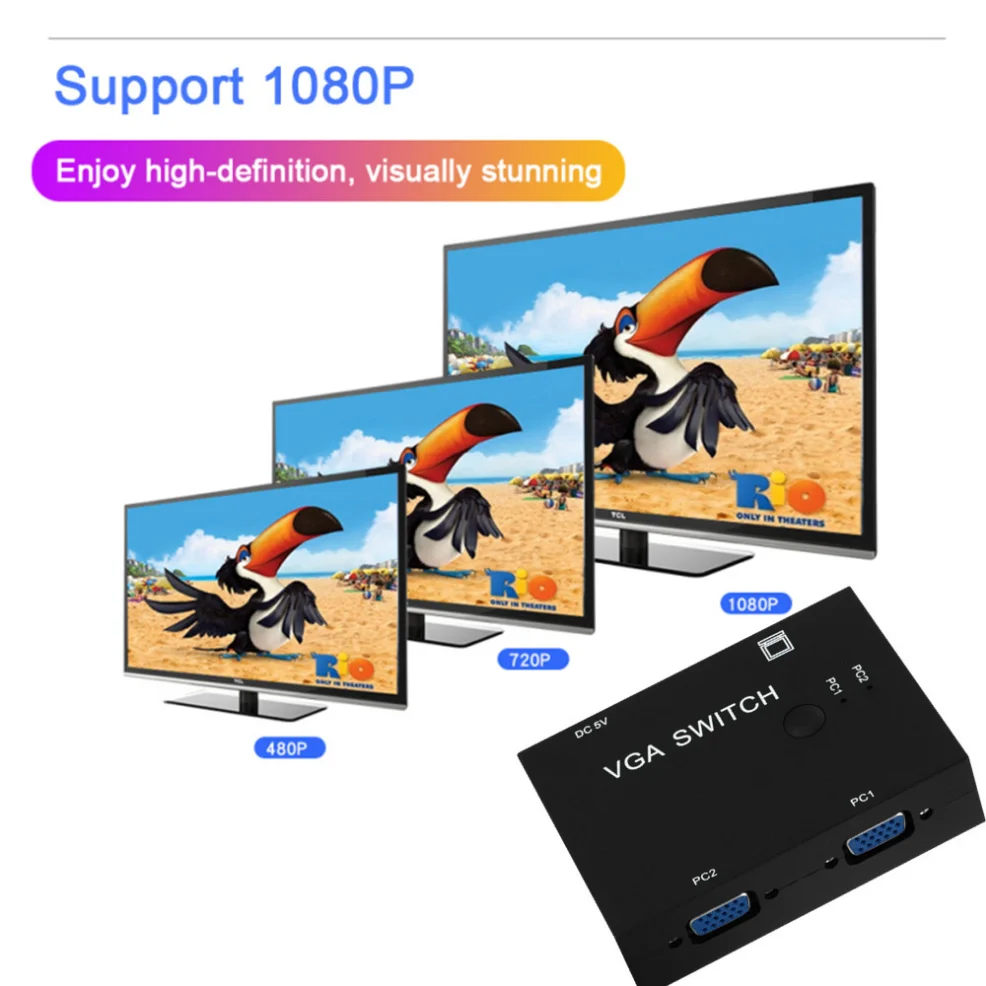 1 x Cable USB Comprar Divisor de interruptor VGA de Salida 2 en 1, Adaptador convertidor de vídeo VGA de 2 puertos, conmutador de Cable VGA de 1080P para pantalla de proyector, PC, TV y portátil