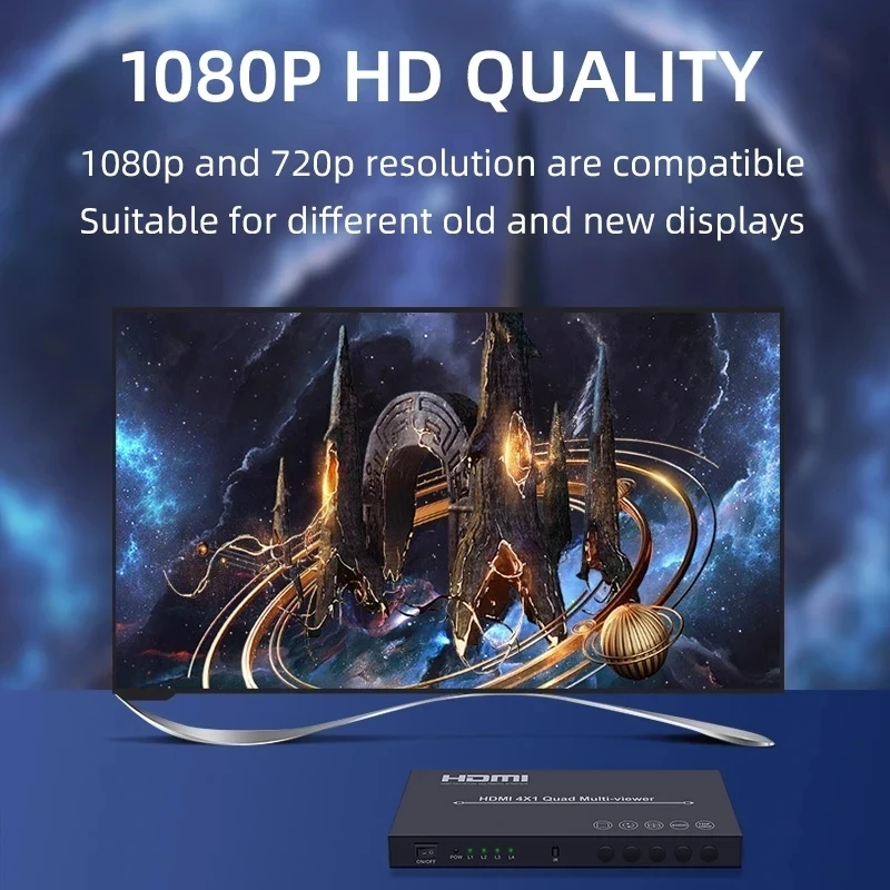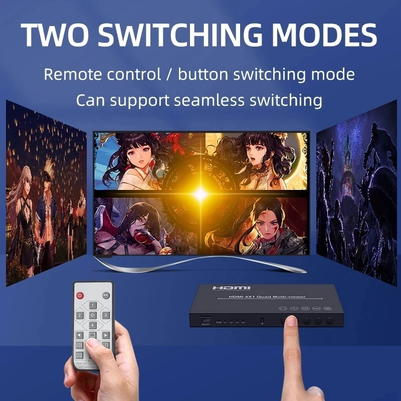 Comprar Divisor multivisor 4 en 1 HDMI Quad, salida 4 en 1, pantalla cuádruple de vídeo de 1080P, en tiempo Real, conmutador sin costuras con control remoto IR