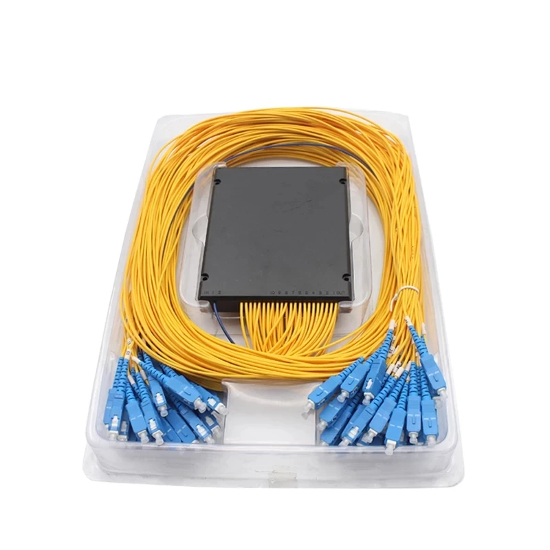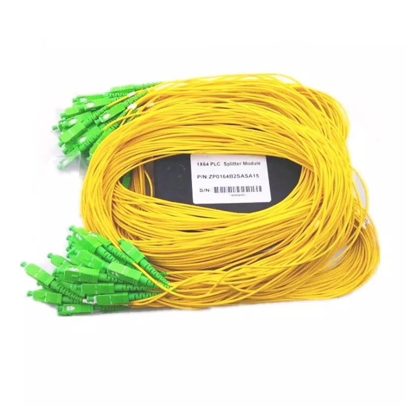 Comprar Divisor óptico PLC 1*64 caja ABS SC UPC APC 1M 1,5 M 2mm 3mm cable amarillo 1x64 ftth acoplador Cassette ODN envío gratis ftthelink