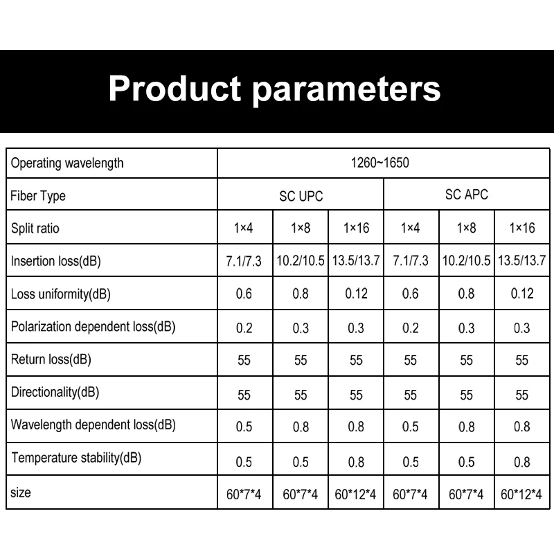 Comprar Divisor óptico SC APC 0,9mm 1x8 FTTH divisor de fibra óptica SC UPC PLC FBT acoplador óptico monomodo tubo de acero simple PVC