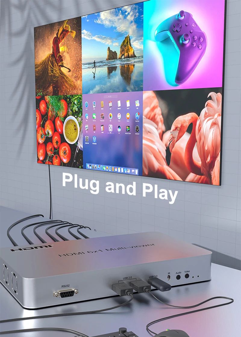 * Admite la segmentación de pantalla de 6 señales HDMI;