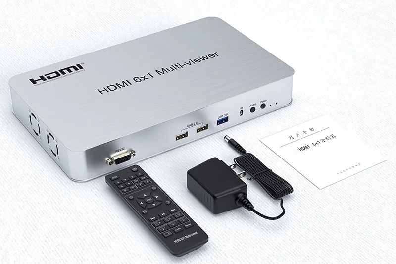 Interruptor de salida. Puede mostrar 6 señales de vídeo digital HD en la misma pantalla y tiene una variedad de segmentación de vídeo, cambiando sin interrupciones 6 señales de entrada HD de forma sincrónica. Los métodos de control son flexibles, se pueden cambiar a través de un botón, RS232 y control IR. Es un producto muy práctico y estable y fácil de instalar, se puede utilizar en los principales proyectos, salas de reuniones y otros lugares.