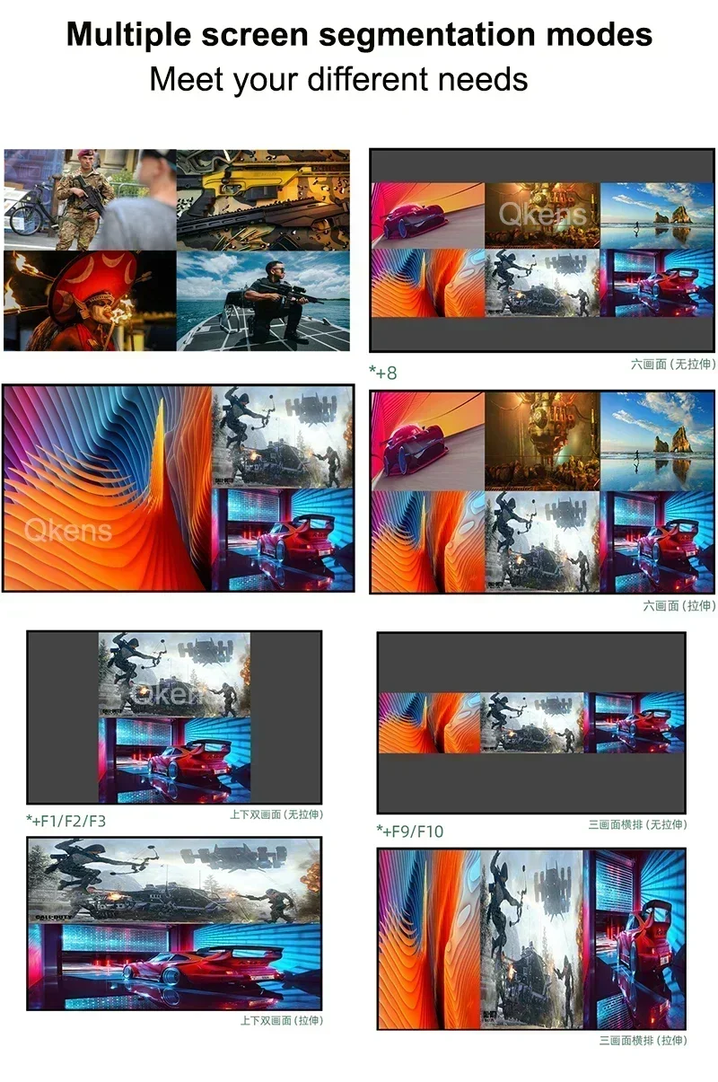 * Admite una variedad de segmentación de video (PIP/POP/PBP/imagen única/imagen dual/cuatro