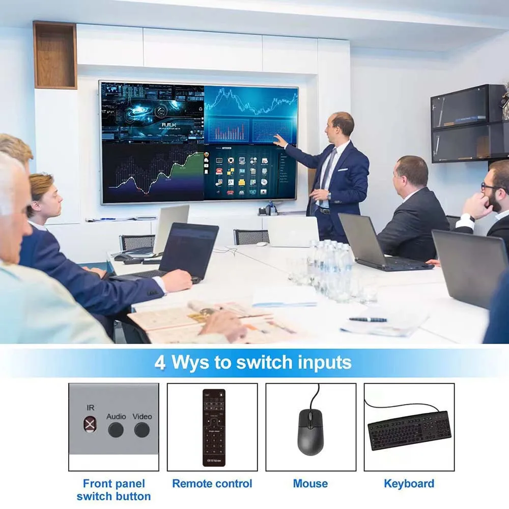 Es flexible, se puede cambiar mediante botón y control IR. Es un multivisor muy práctico, estable y fácil de instalar,