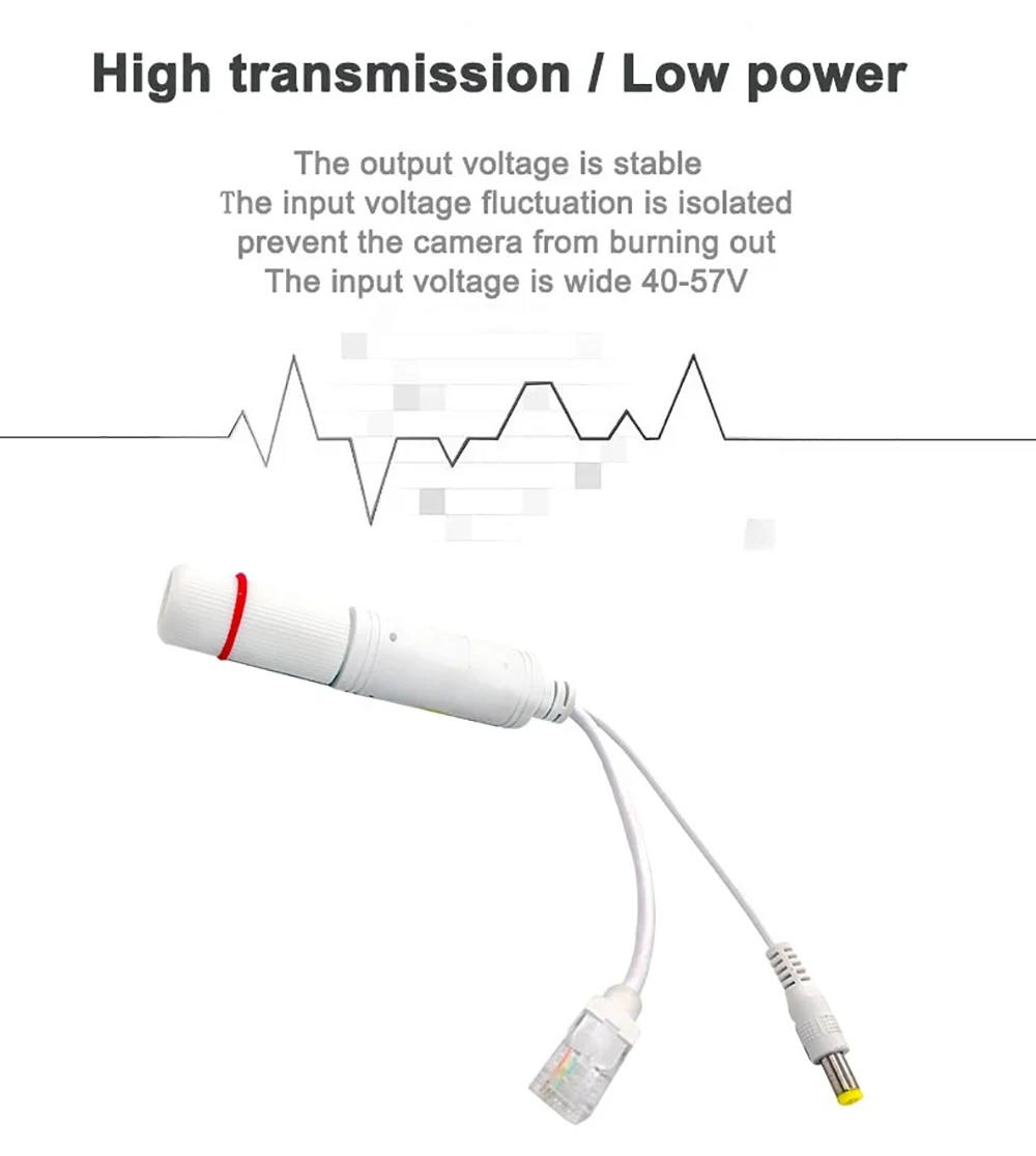 Divisor POE 48V a 12V Adaptador de corriente y vídeo Waterprrof Módulo de suministro de cable Extensor de inyector para cámara IP Divisor Net AP Cam Sistema de control de acceso AP inalámbrico