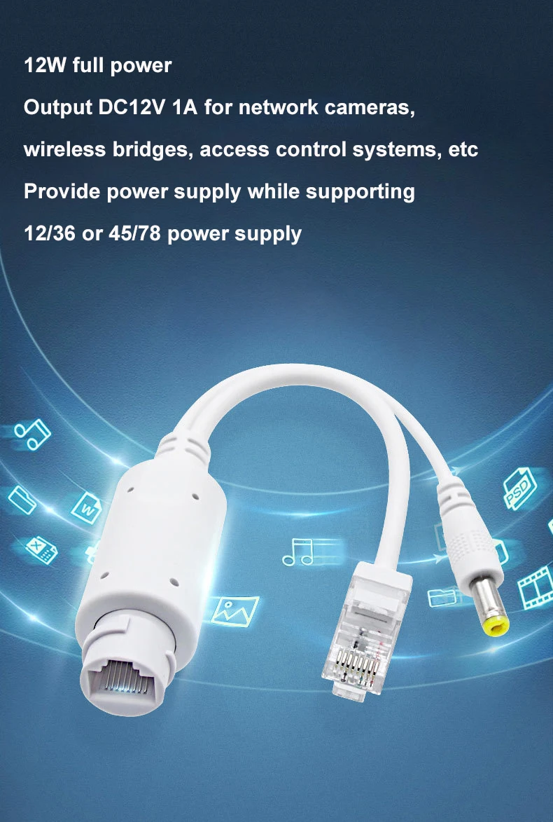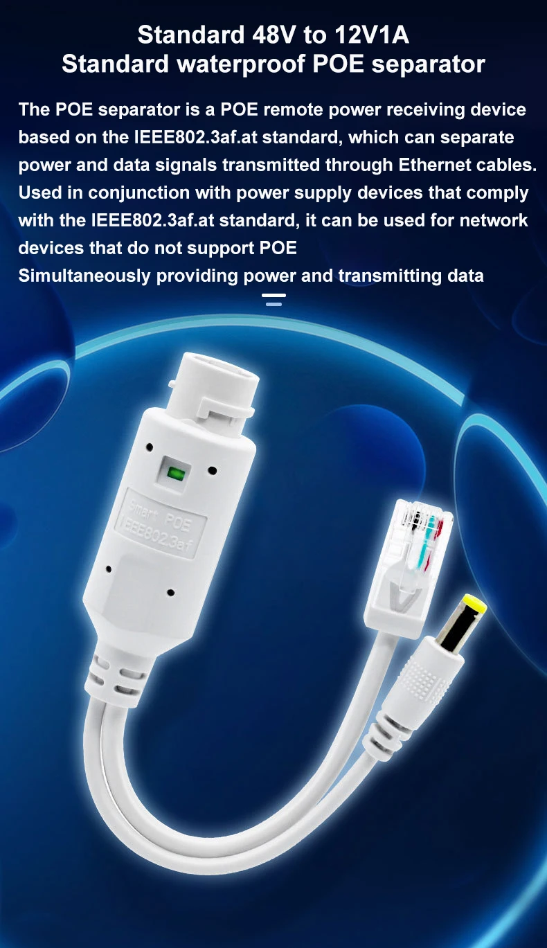 Comprar Divisor POE de 48V a 12V, resistente al agua, con adaptador de vídeo y corriente, módulo de suministro de Cable, inyector para extensor de cámara IP