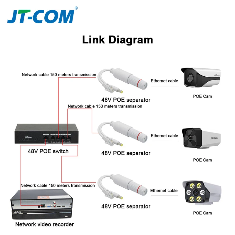 Comprar Divisor POE de 48V a 12V, tipo inyector estándar y módulo de suministro de Cable adaptador de corriente y vídeo impermeable para extensor de cámara IP