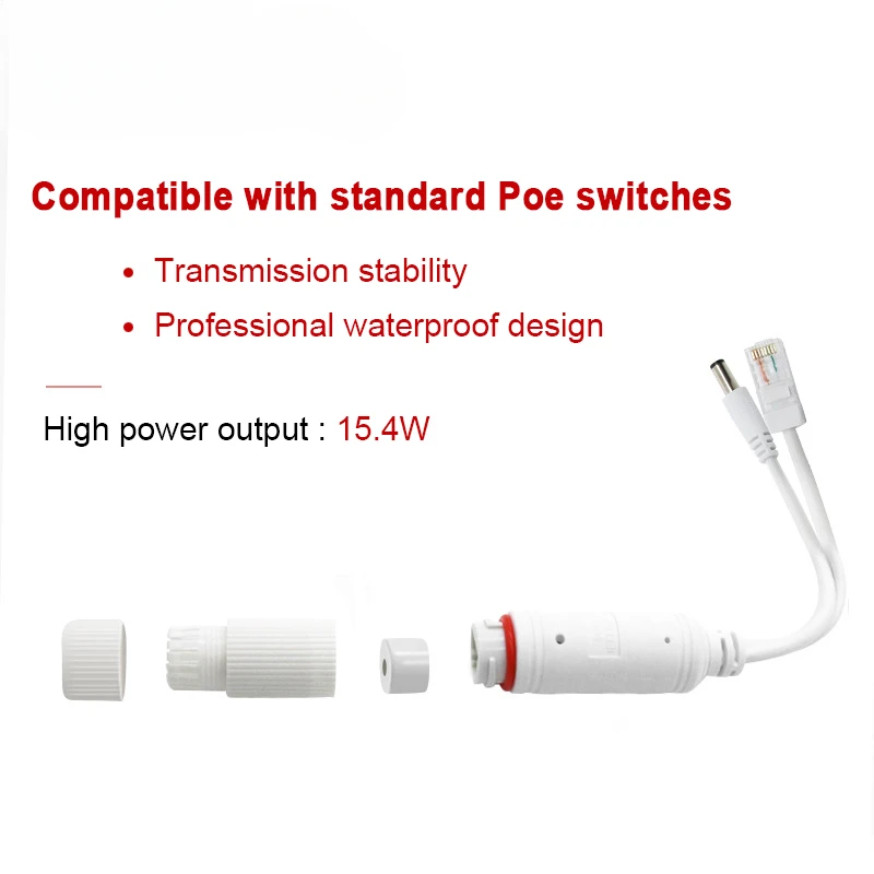 Divisor POE de 48V a 12V Waterprrof con vídeo y adaptador de corriente, módulo de suministro de Cable, inyector para extensor de cámara IP