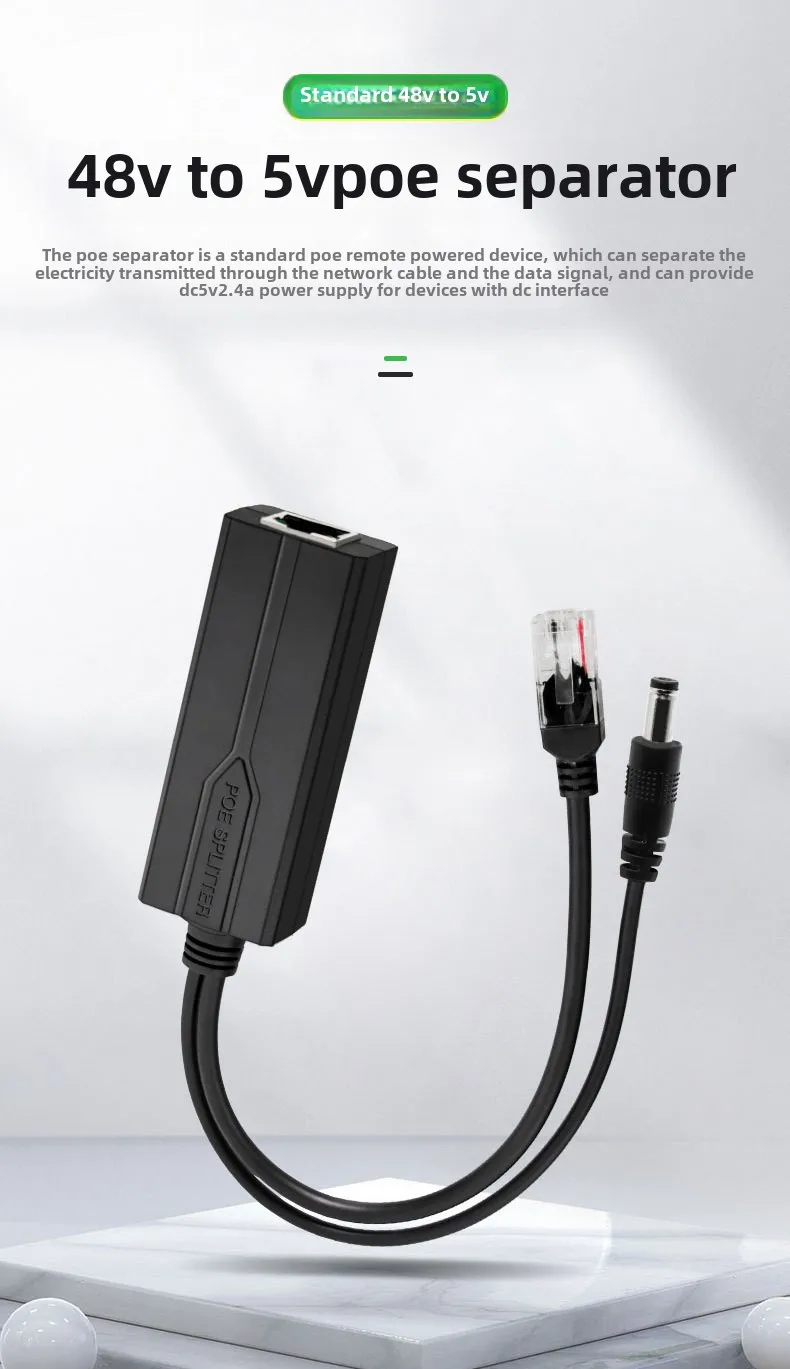 Comprar Divisor POE estándar 48V a 5V 2.4A Micro DC 100M/1000M Fuente de alimentación del inyector de la cámara POE