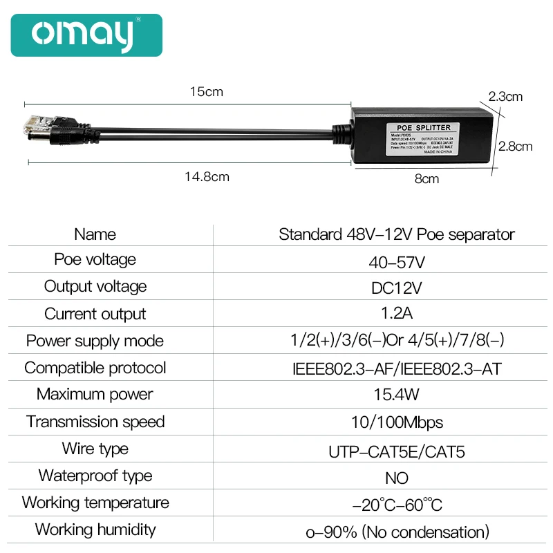 Comprar Divisor POE estándar para Huawei Hikvision, fuente de alimentación de inyector de cámara, 48V a 5V, 12V, 1.2A, 2.2A, Micro USB, tpye-c, 100M/1000M