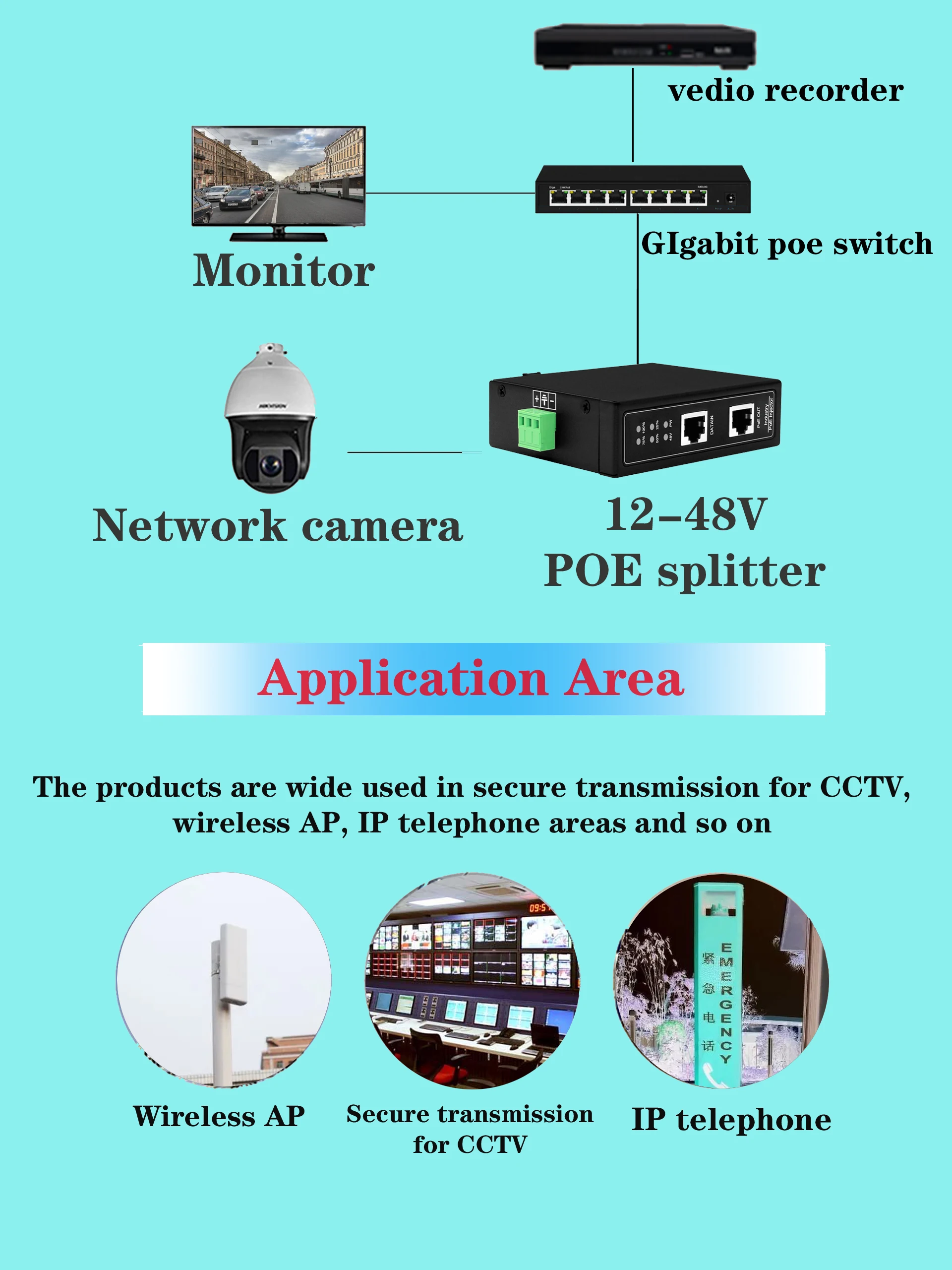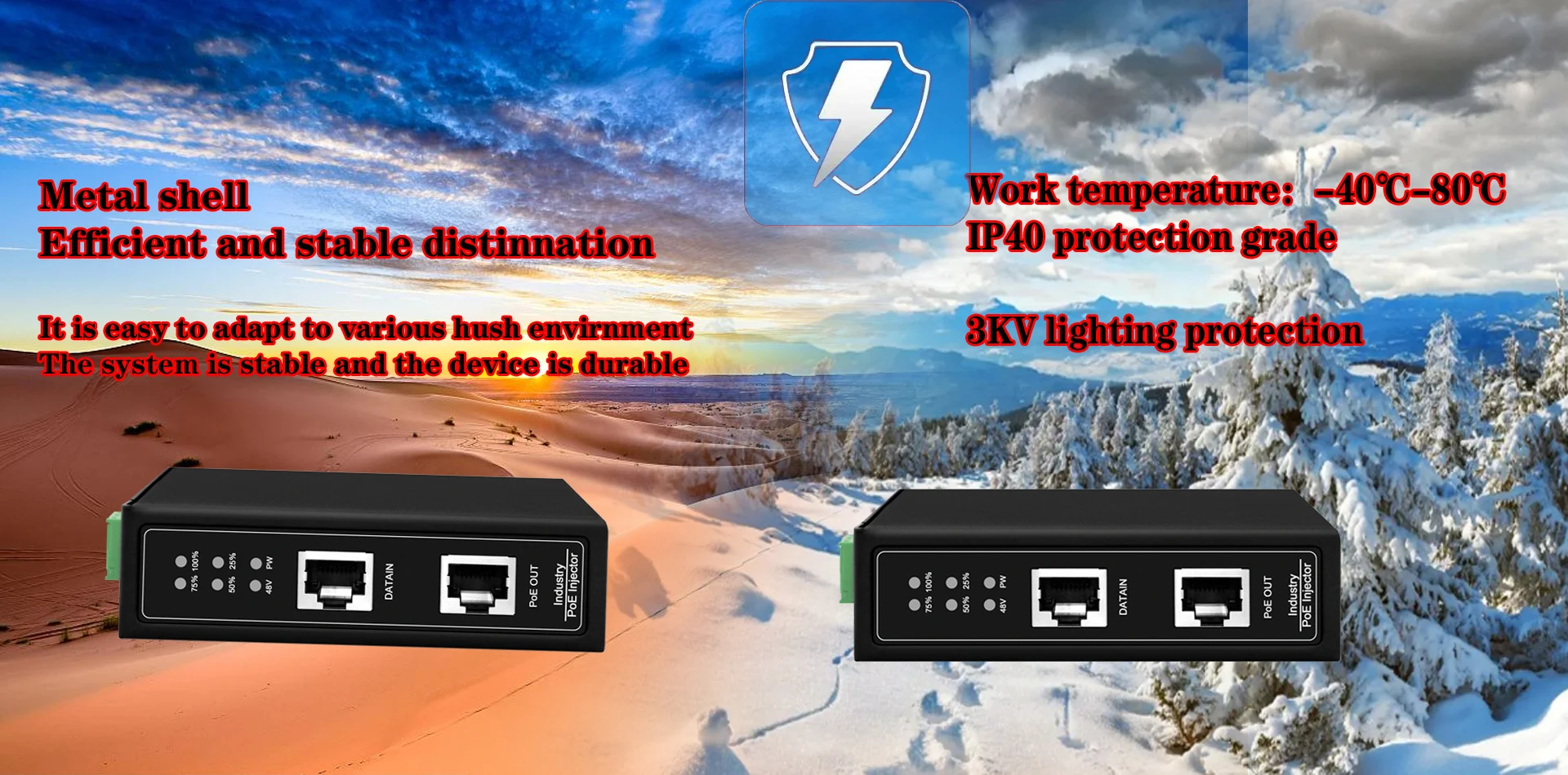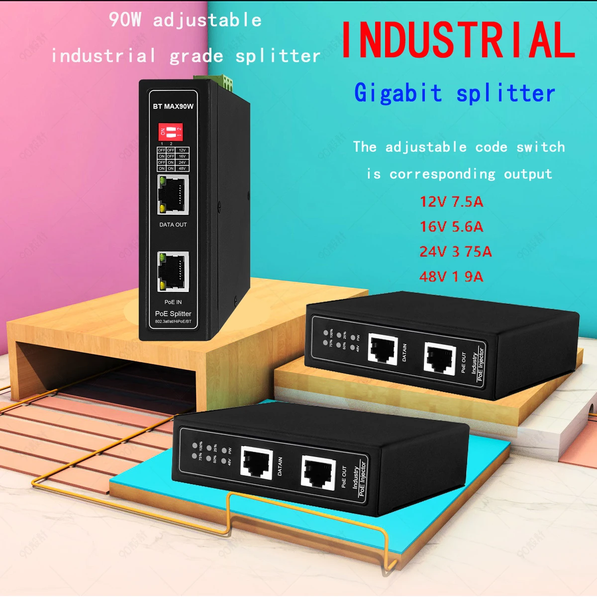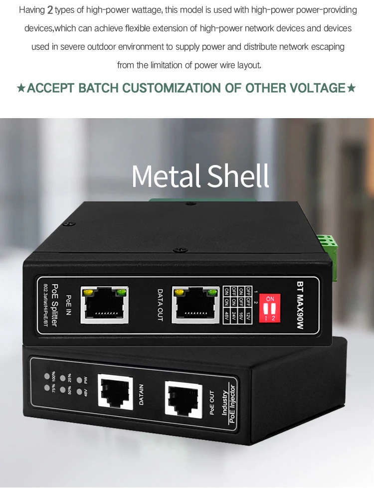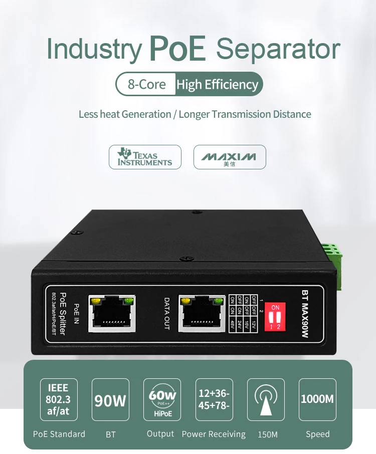 Comprar Divisor PoE gigabit industrial DIN 90W para voltaje de salida de 12/24/48V ajustable o opcional