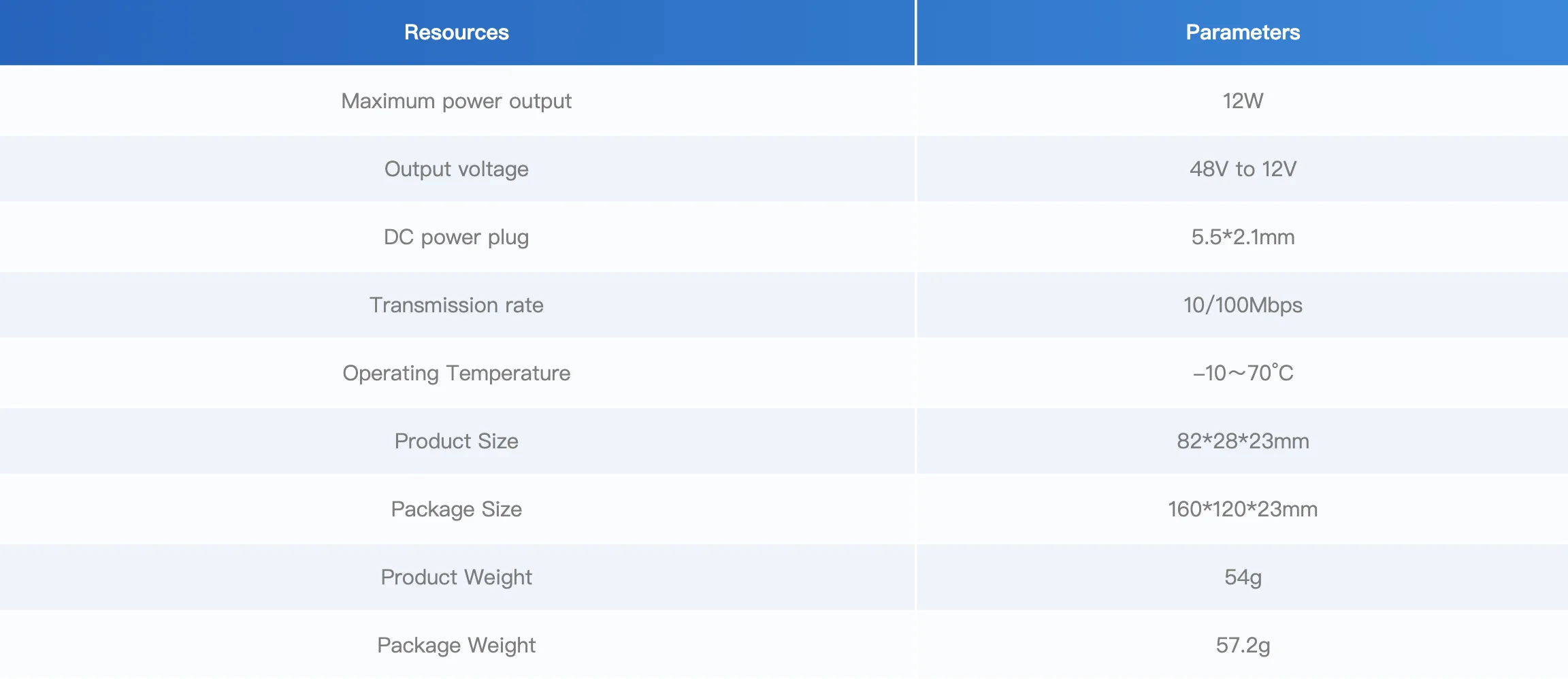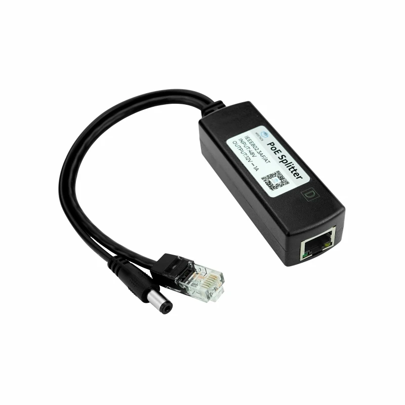 PoE Splitter is a standard PoE splitter used to separate Power over Ethernet (PoE) signals to prevent electrical interference or electrical faults from propagating from PoE power supply lines to network devices, ensuring device stability and safety. It converts 48V PoE power supply signal to 12V voltage, while providing 12 watts of power output, adaptive AT/AF two protocols, compatible with IEEE802.3-AF and IEEE802.3-AT two protocols, suitable for the Internet of Things, industrial automation, telecommunications equipment and other fields.