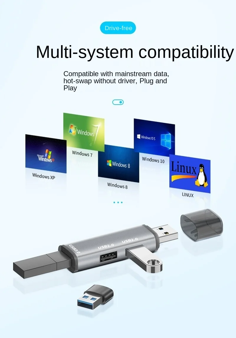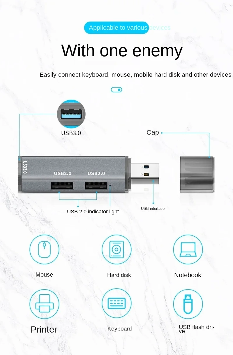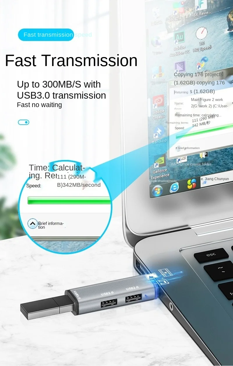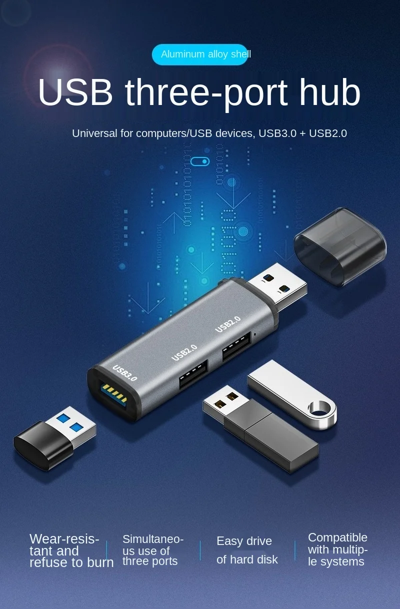 Comprar Divisor portátil 3 en 1 USB 3,0 USB 2,0, Hub de 3 puertos, divisor multiinterfaz para Cable adaptador de transmisión de datos