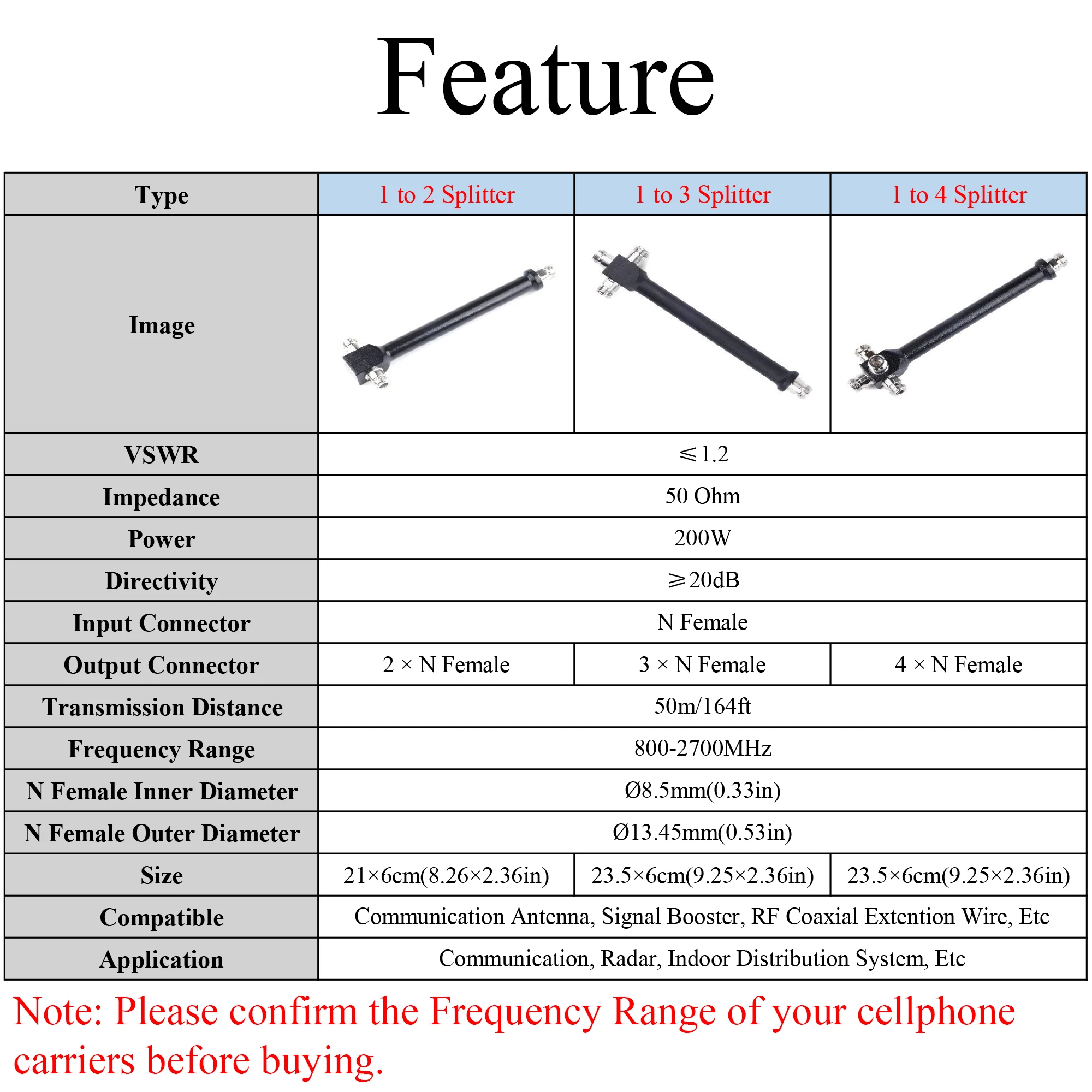 5 uds 800-2700Mhz 1 a 2/3/4 vías tipo N divisor de potencia hembra para 2G 3G 4G amplificador de señal móvil GSM 4G repetidor antena
