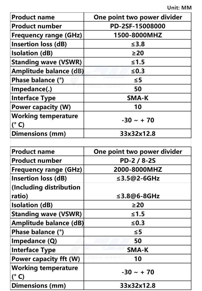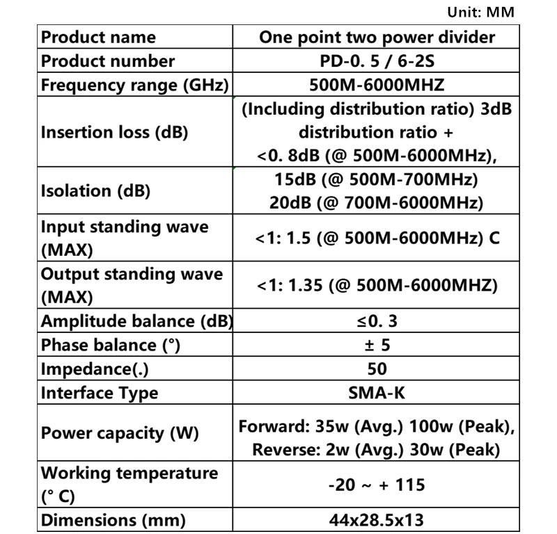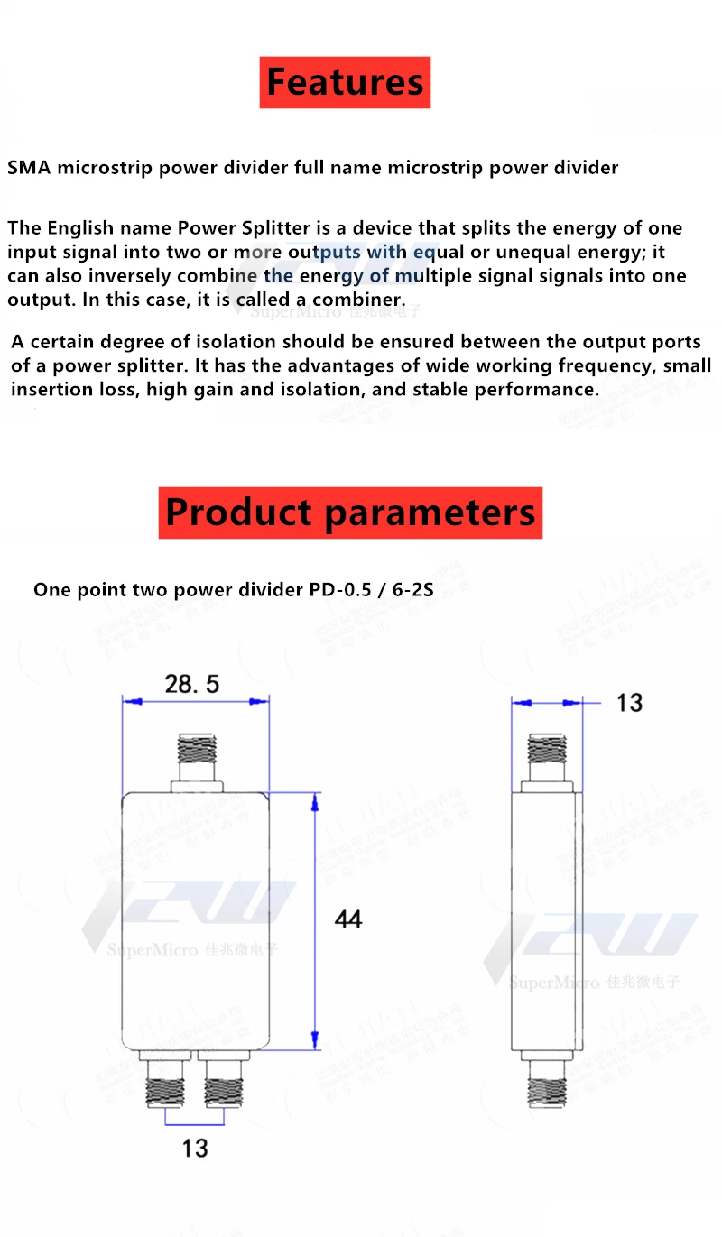 Divisor de potencia SMA 2-8G WIFI, un punto, dos microtiras RF, 500-6000MHz, 1,5-8G