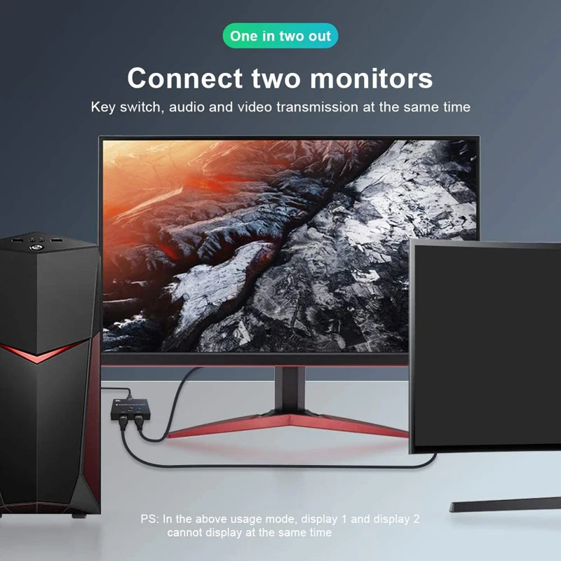 Nota: 1.Esto es un Switch. Cuando un dispositivo fuente de vídeo está conectado a dos monitores. Dos monitores no pueden mostrarse al mismo tiempo. Solo se puede cambiar entre dos monitores.