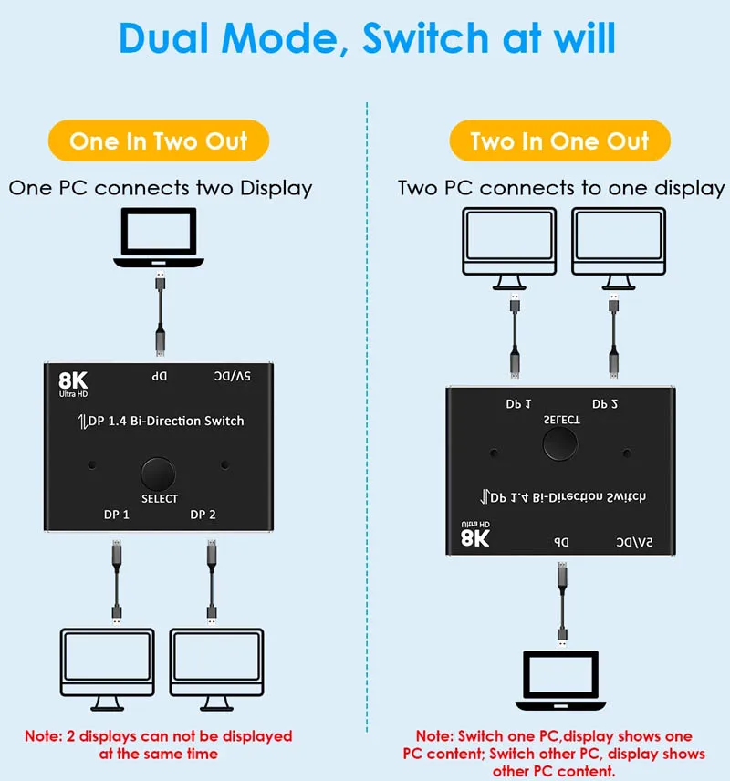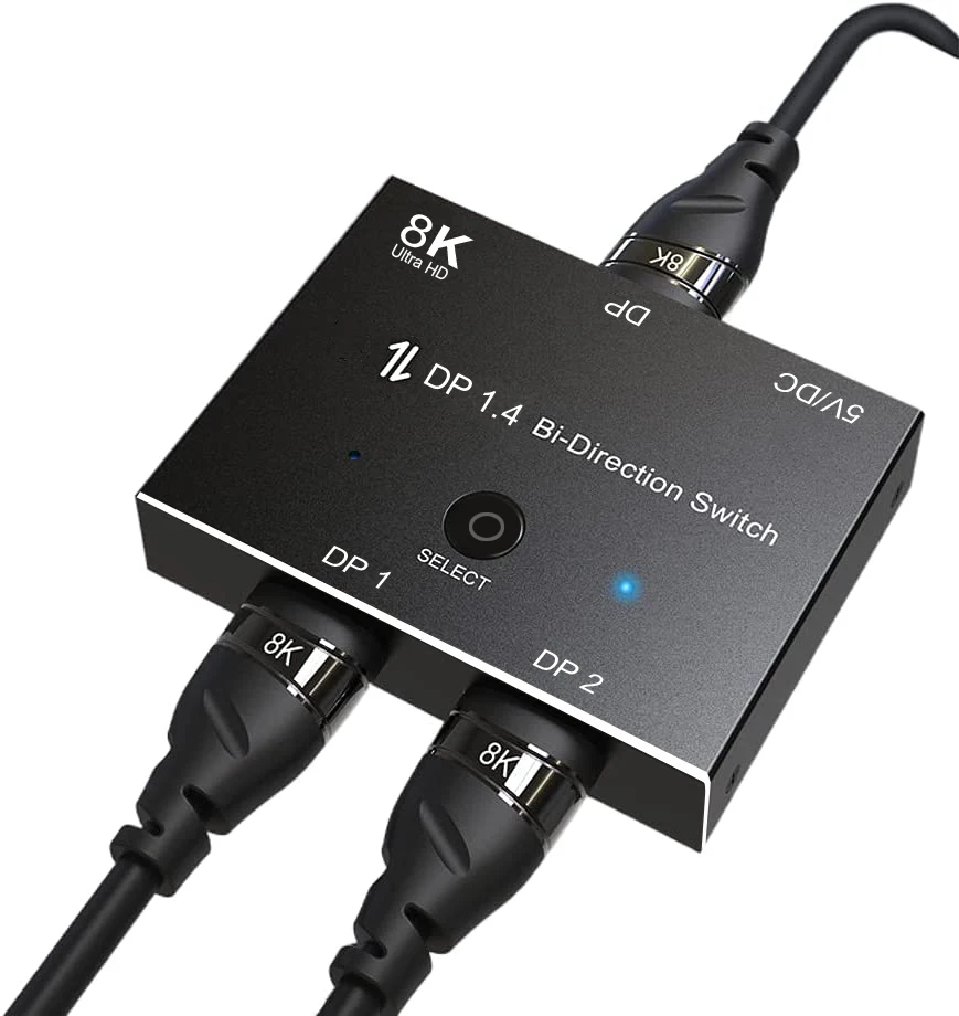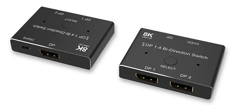Comprar Divisor de puerto de visualización 1 en 2 8K @ 30Hz 4K @ 120Hz HD DP 1,4 Switcher 1x2 2x1 2 en 1 Out Dual way Switch 8K DP Video distribuidor