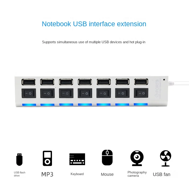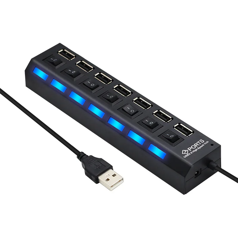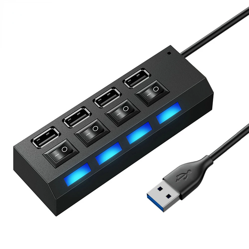 Comprar Divisor de red USB 2,0 para ordenador, adaptador de corriente de varios puertos con interruptor, accesorios para portátil, 2,0