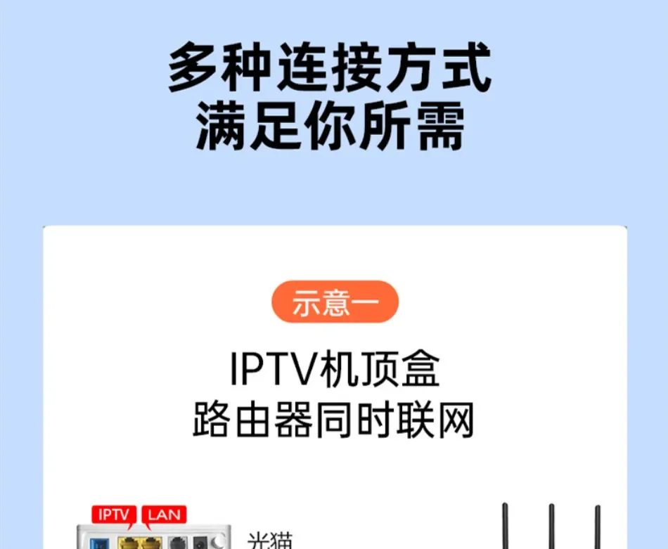 6.Características: Cable de red preintegrado, dos dispositivos pueden acceder a Internet al mismo tiempo.