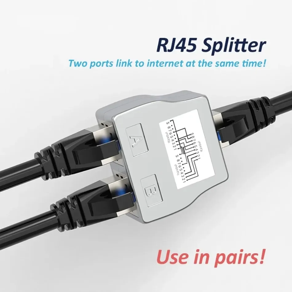 - Adaptador Cat5e divisor de red RJ45 1/5/15/25/50 par 1 toma RJ45 a 2 conectores de cable Ethernet blindados (2 puertos funcionan al mismo tiempo) (Elija más cantidad, más barato)