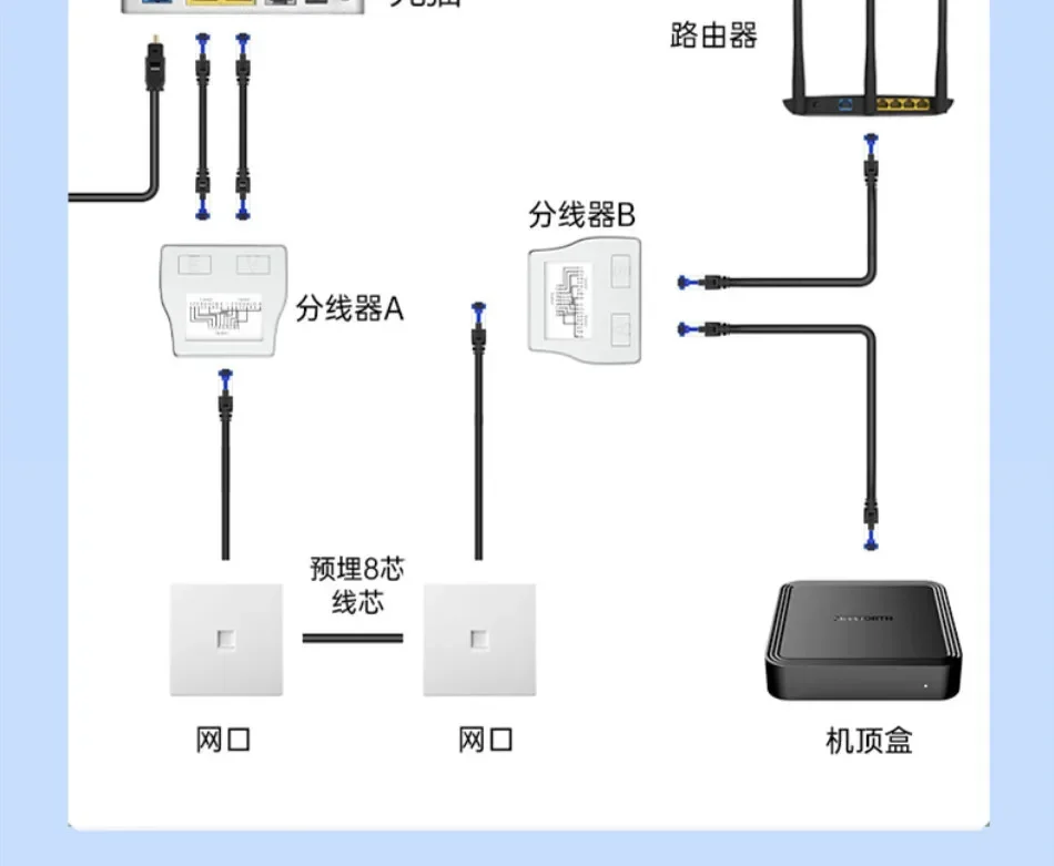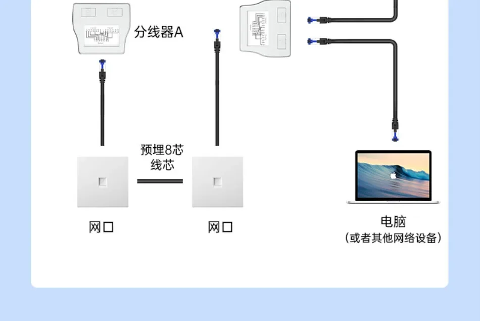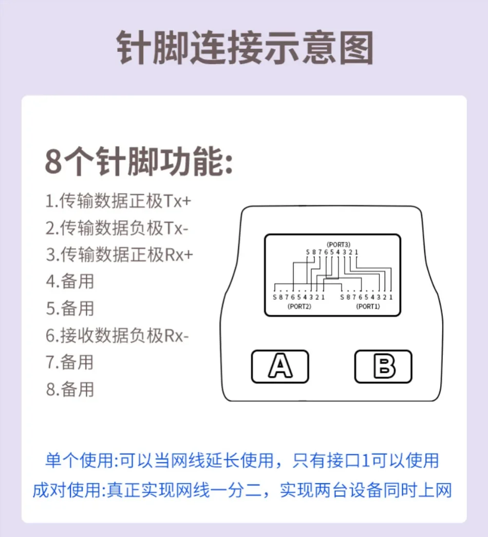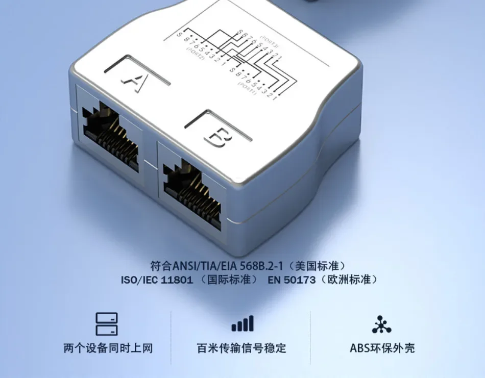 1.Nombre del producto:Acoplador RJ45 Adaptador de red de 1 a 2 vías Divisor RJ45