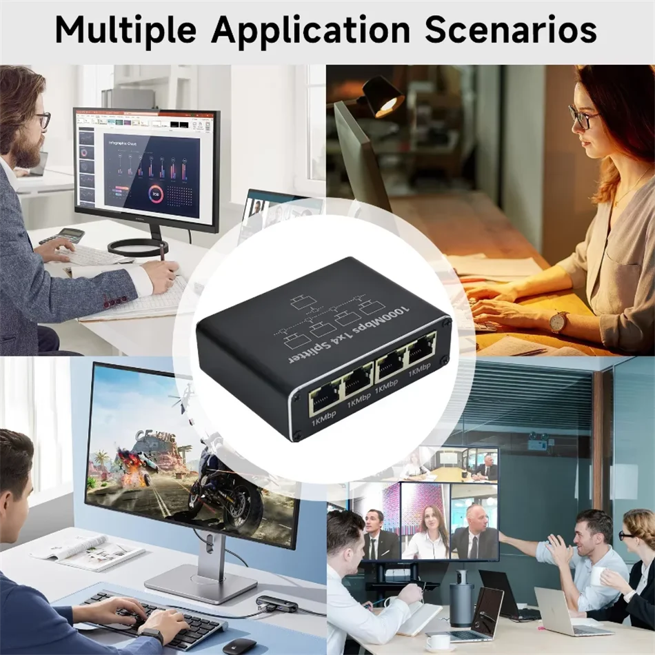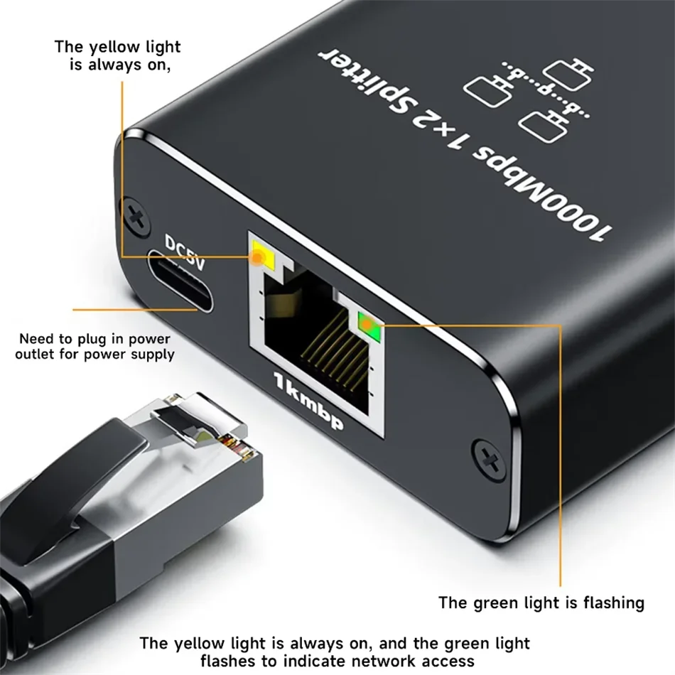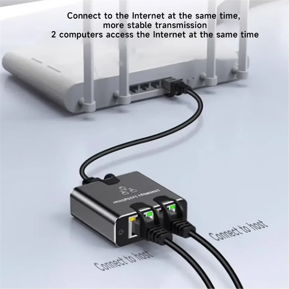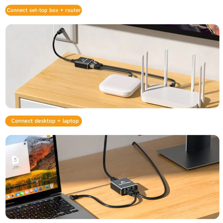 3.Divisor Gigabit Ethernet: Con un puerto de entrada y dos puertos de salida, este conmutador RJ45 le permite expandir fácilmente sus puertos de red, mejorando la disponibilidad y la flexibilidad.Le permite conectar varios dispositivos a la red sin invertir en costosos equipos de red.