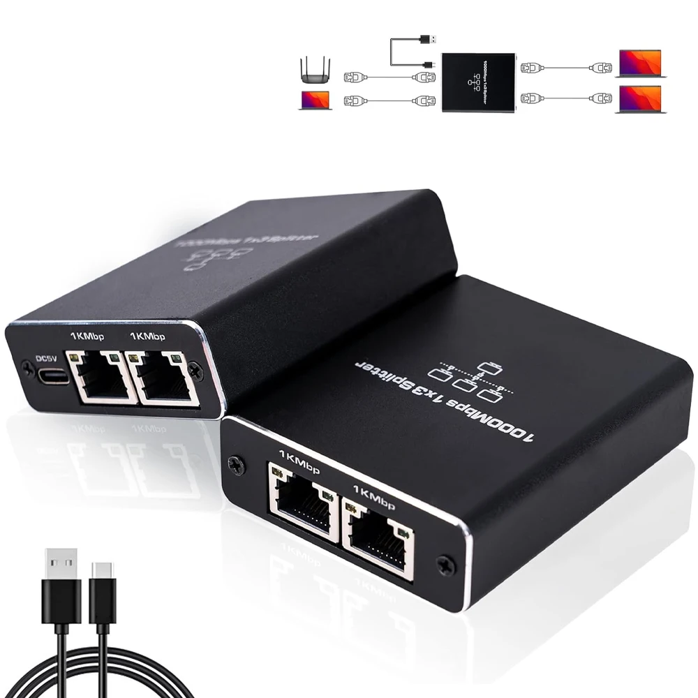 Sobre los artículos:Material:Aleación de aluminioDistancia de transmisión100 metros (máx.)Divisor Ethernet:Admite que varios ordenadores utilicen un cable Ethernet al mismo tiempo. Puede elegir diferentes estilos para el número de dispositivos conectados. La velocidad de transmisión del dispositivo puede alcanzar los 1000Mbps, lo que resuelve perfectamente los problemas de cableado de red insuficiente y transmisión de señal inestable.Mini Diseño:El diseño es pequeño y ligero, muy portátil y no ocupa mucho espacio. En el caso de cableado difícil, como pasar a través de la pared de un edificio, este producto se puede utilizar para reducir el número de cables en la red, que es una buena opción.Fácil de usar:El conmutador Ethernet admite conexión Gigabit Ethernet, utiliza cables CAT6/7/8, proporciona velocidad Gigabit Ethernet, garantiza una transmisión de datos rápida y estable, transferencia de archivos, transmisión o juegos en línea (Nota: dos ordenadores comparten un ancho de banda de red de 1000M, la velocidad real depende de los dispositivos conectados y la red, se proporciona un cable de alimentación tipo C de 1M y 5V.Ampliamente utilizado:El divisor Ethernet permite usar varios dispositivos al mismo tiempo, simple y eficiente, diseño liviano, solo necesita conectar la alimentación, no requiere controlador, simplemente conecte el cable de red para establecer el acceso simultáneo a Internet para dos ordenadores. La transmisión de señal de los dos conjuntos de líneas no interfiere entre sí y se puede utilizar Con concentradores, interruptores, televisores, enrutadores, dispositivos inalámbricos, computadoras, etc. Potente y práctico, se puede utilizar como dispositivo de red para satisfacer sus necesidades de conexión multidispositivo.Lista de embalaje1M 5V tipo C cable de alimentación * 1Divisor Ethernet RJ45 * 1