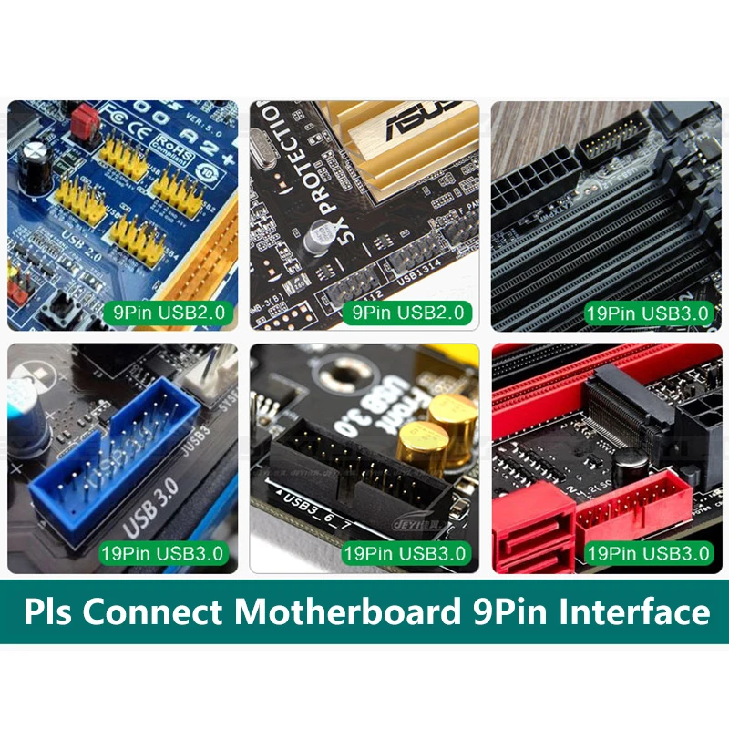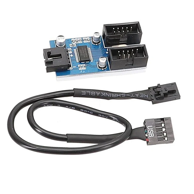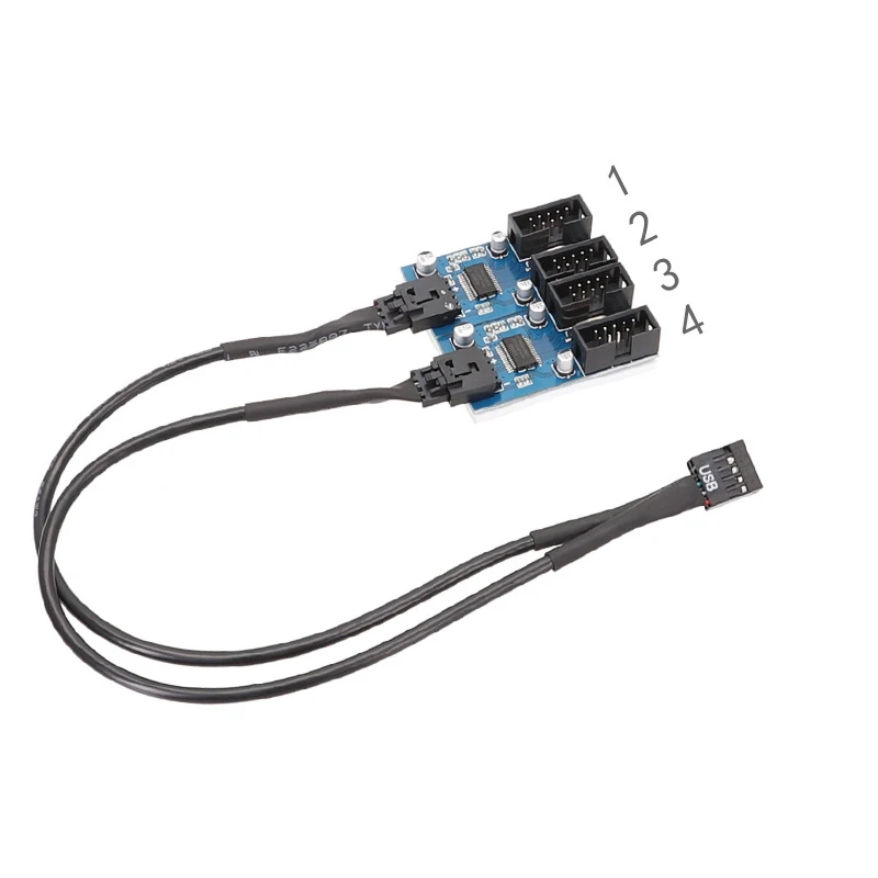 Comprar Divisor USB de 9 pines y 30cm, extensión de cabezal de interfaz de placa base de 1 a 2/4, Cable de escritorio, Puerto adaptador de conector HUB USB 2,0