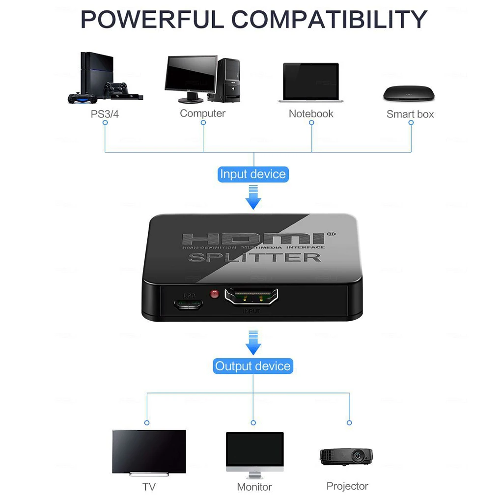 Comprar Divisor de vídeo 4K HD Full HD 1080p, conmutador 1x2, amplificador de salida 1 en 2 para HDTV y DVD