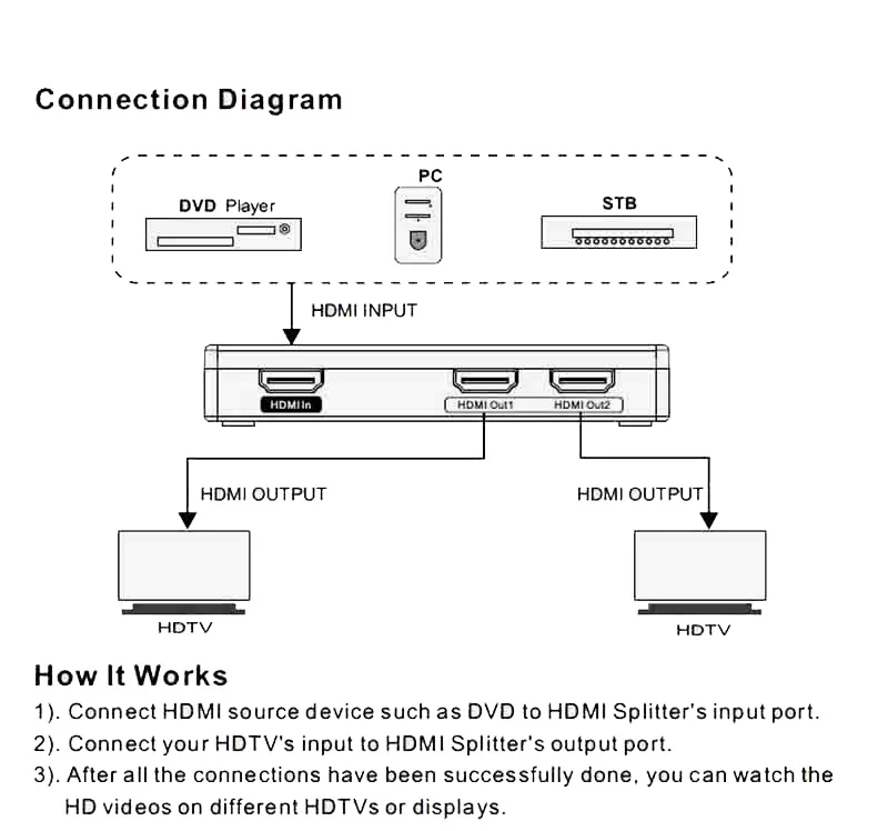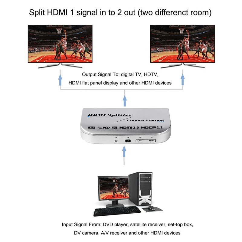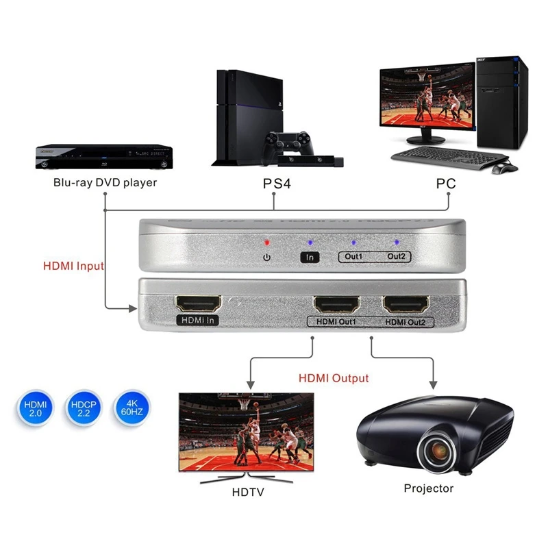 Comprar Divisor de vídeo 4K x 2K HDMI 1x2 HDCP 2,2, divisor de vídeo HDMI 2,0, 1 en 2, adaptador HD 1080P 4K para HDTV TV BOX reproductor de DVD PS4