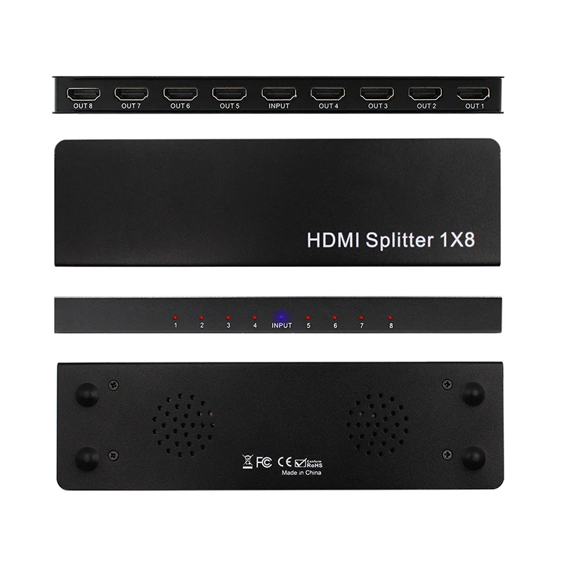 El divisor HDMI 1 × 8 permite dividir fácilmente 1 sola fuente HDMI en 8 monitores o proyectores compatibles con HDMI. Resolución HDMI de hasta 3840x2160/30Hz. También es muy fácil de usar con alta estabilidad y fiabilidad. Es ampliamente utilizado en videoconferencias, presentaciones de conferencias, cine en casa, oficina, enseñanza, etc.